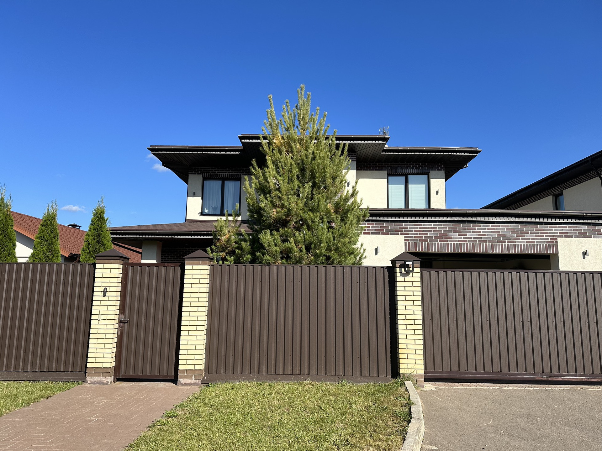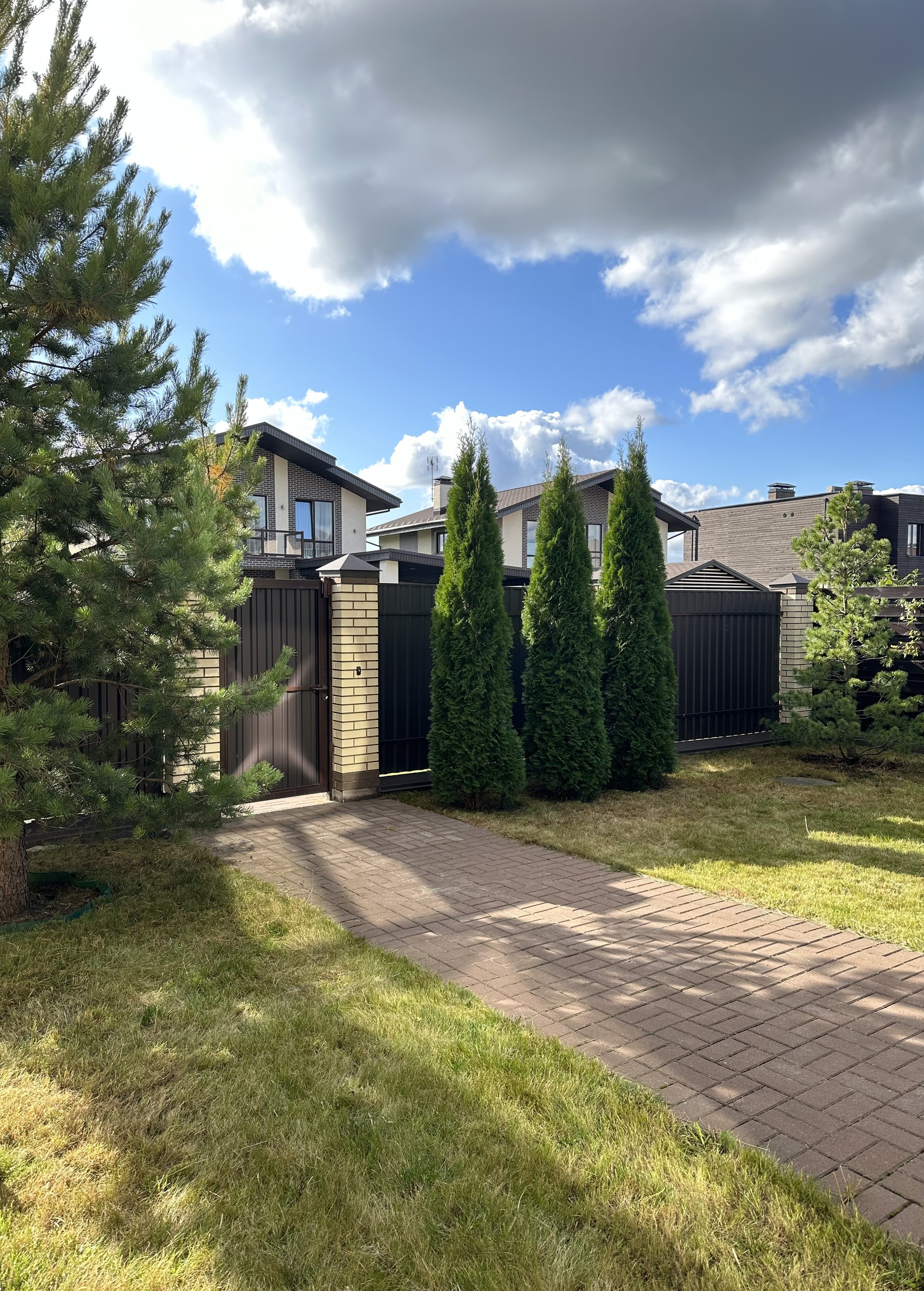 На участке выполнен ландшафтный дизайн, сделаны дренажные и ливневые системы, установлено уличное освещение и полив.