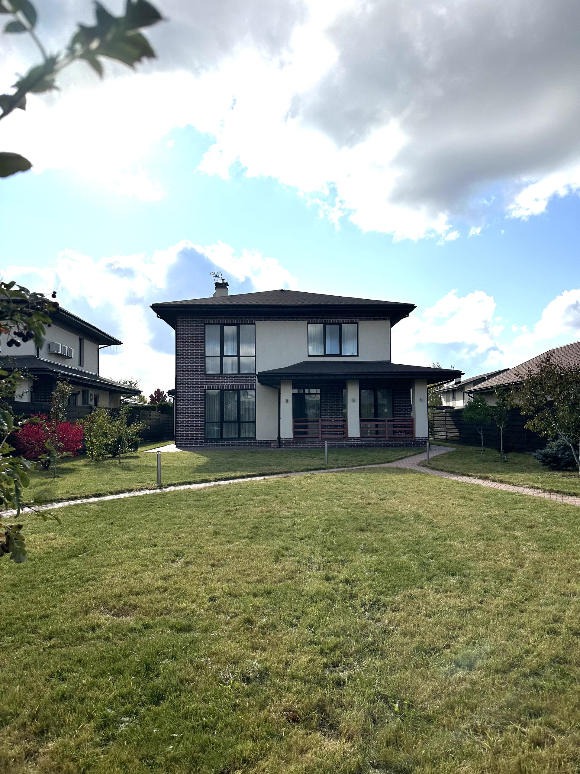 Дом расположен в тихой части поселка, нет шума от дороги. Рядом школа, супермаркеты, рестораны, салоны красоты. До Москвы 30 минут.