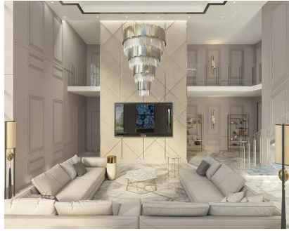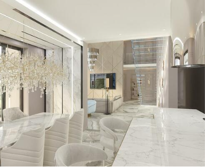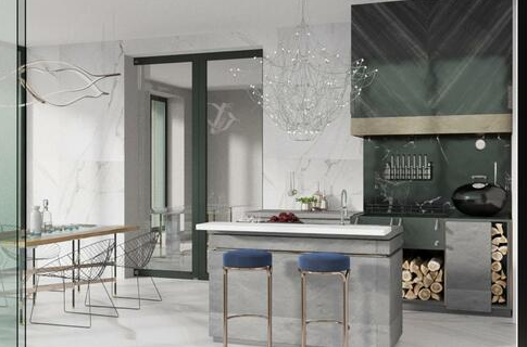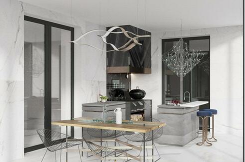 - Общая зона ( включает в себя каминную зону , кухню-столовую , кабинет и т д)