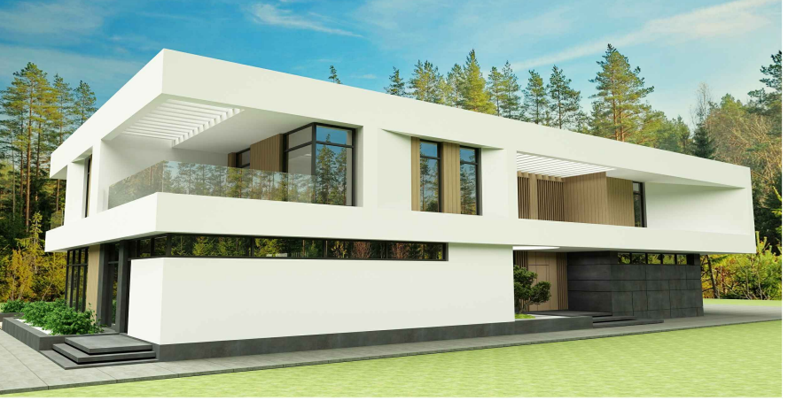 - Современный проект с большим остеклением , благодаря чему в доме будет светло , визуально еще увеличит площадь