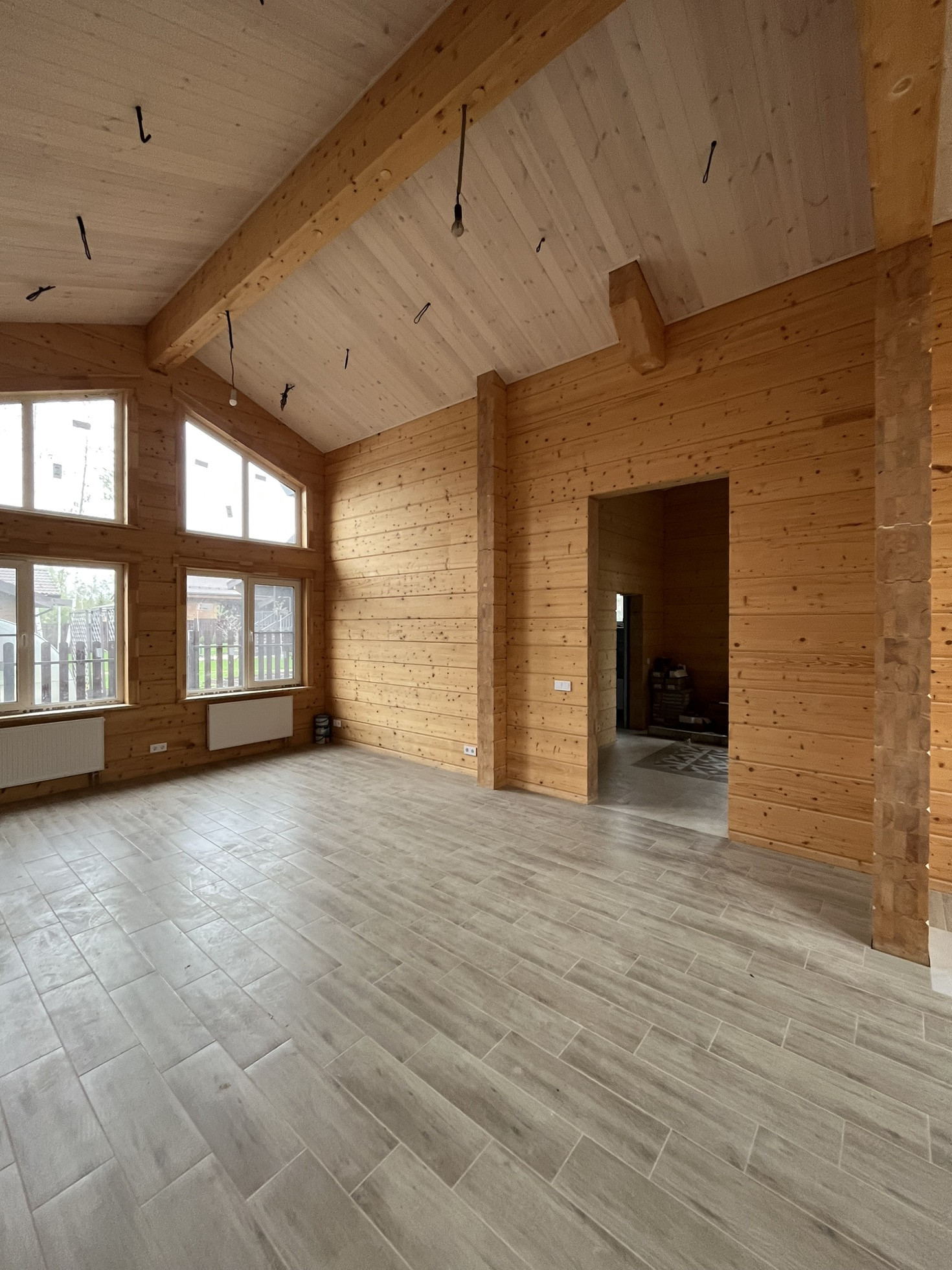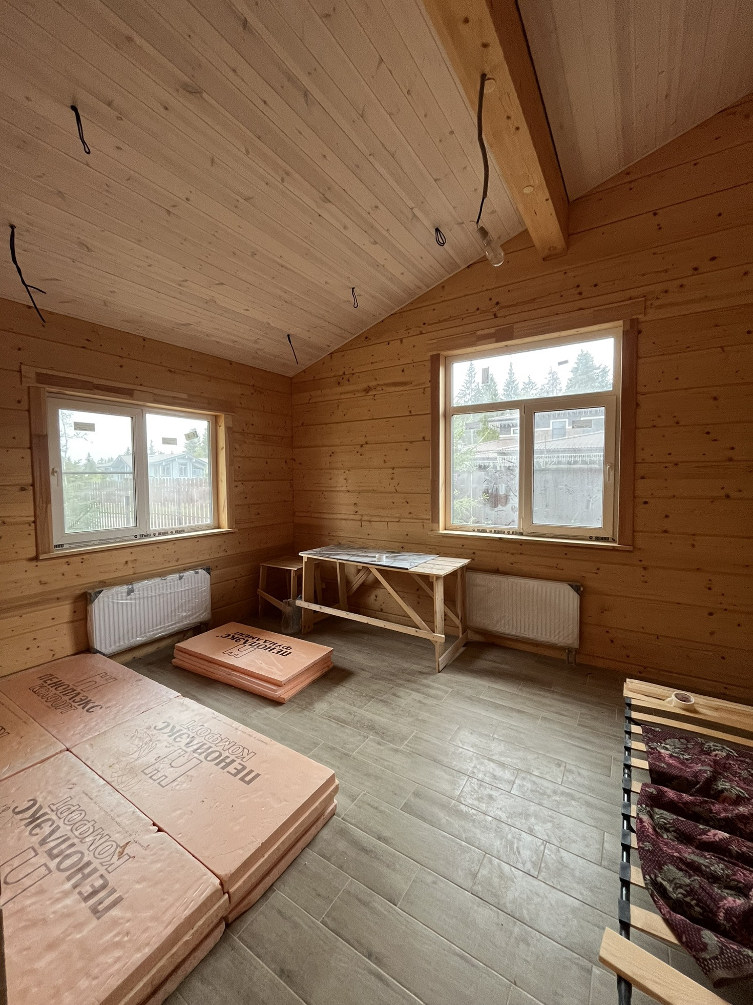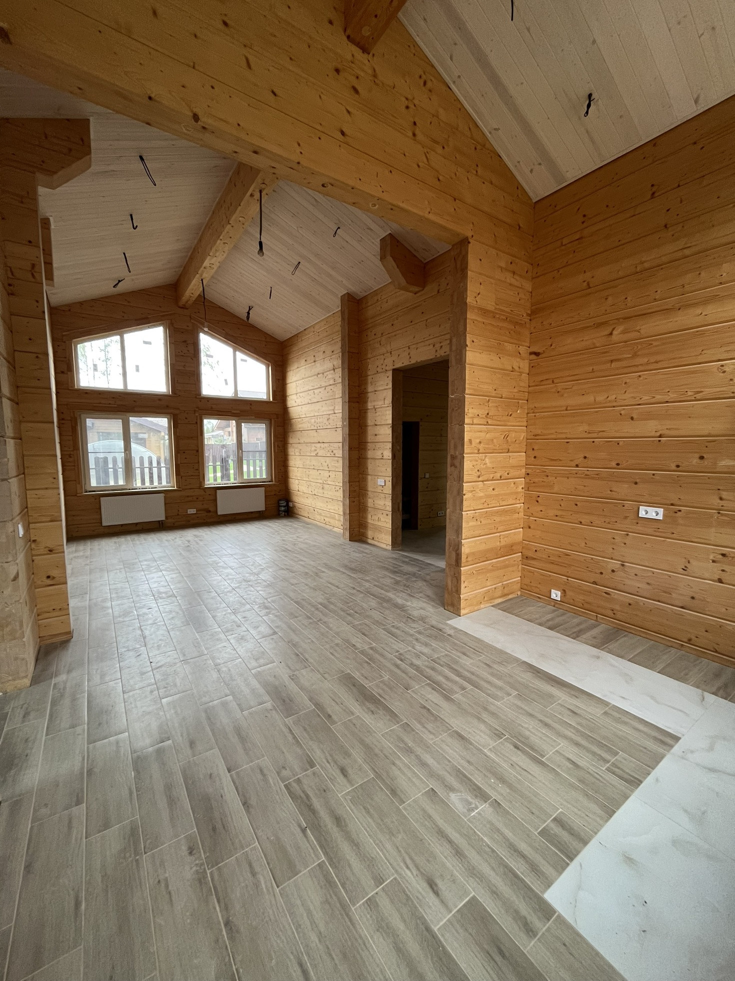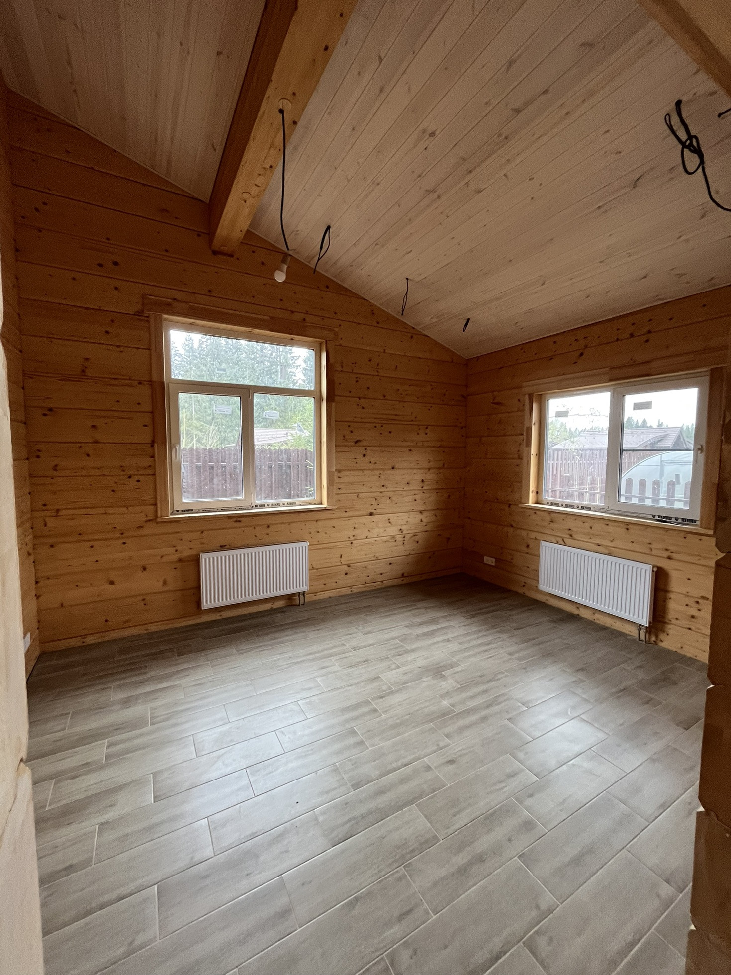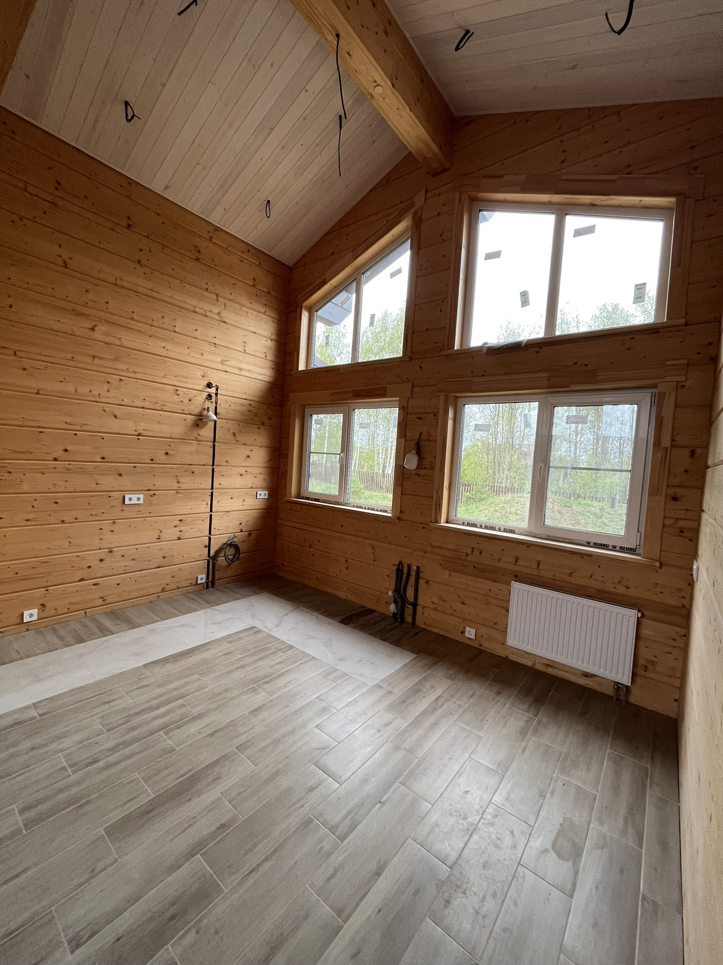 Продается одноэтажный просторный дом из клееного бруса в замечательном поселке бизнес класса Руза Фэмили Парк. Охраняемый посёлок с множеством прогулочных зон, развитой инфраструктурой, четырьмя озёрами, детскими площадками, катком для катания на коньках, теннисным кортом, детским клубом, спа салоном, бассейном, баней, рестораном, контактным зоопарком, тапиари парком и многим другим, автомойка и шиномонтаж. Сам дом практически готов для проживания, осталось повесить светильники, поставить межкомнатные двери, плинтус и раковину с душем и можно завозить мебель. Большой участок и расположение дома позволяет при необходимости построить еще дом большей площади. Электрическая мощность 15 кВт, с возможностью увеличения. Фундамент ростверк+ бетонная плита, кровля Braas, окна Rehau, нестандартный высокий брус, смотрится просто отлично. Покраска снаружи 2 цветами (краска OSMO), внутри бесцветная американская пропитка. Тёплый пол по всему дому. Электо котёл питает дом, газ проходит по границе участка, при необходимости можно завести в дом. Сделан дренаж вокруг дома.