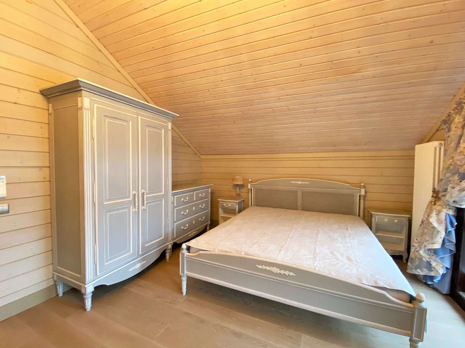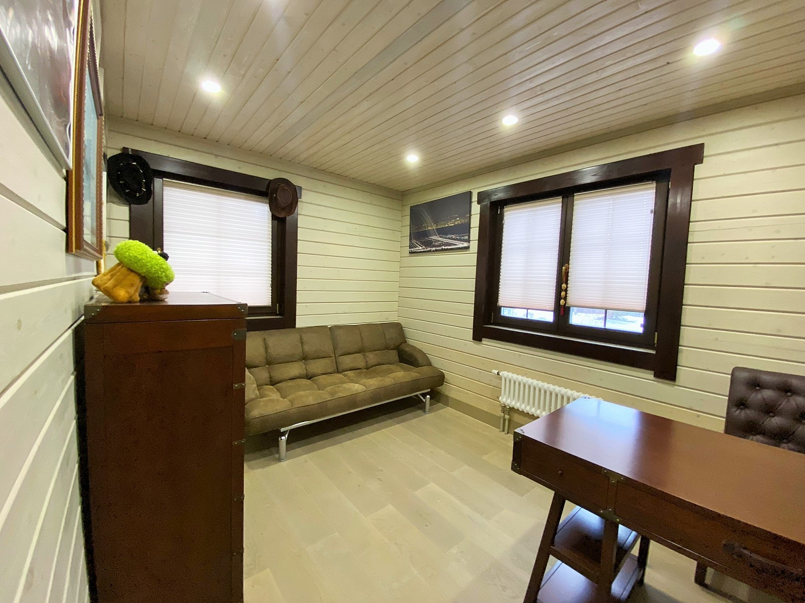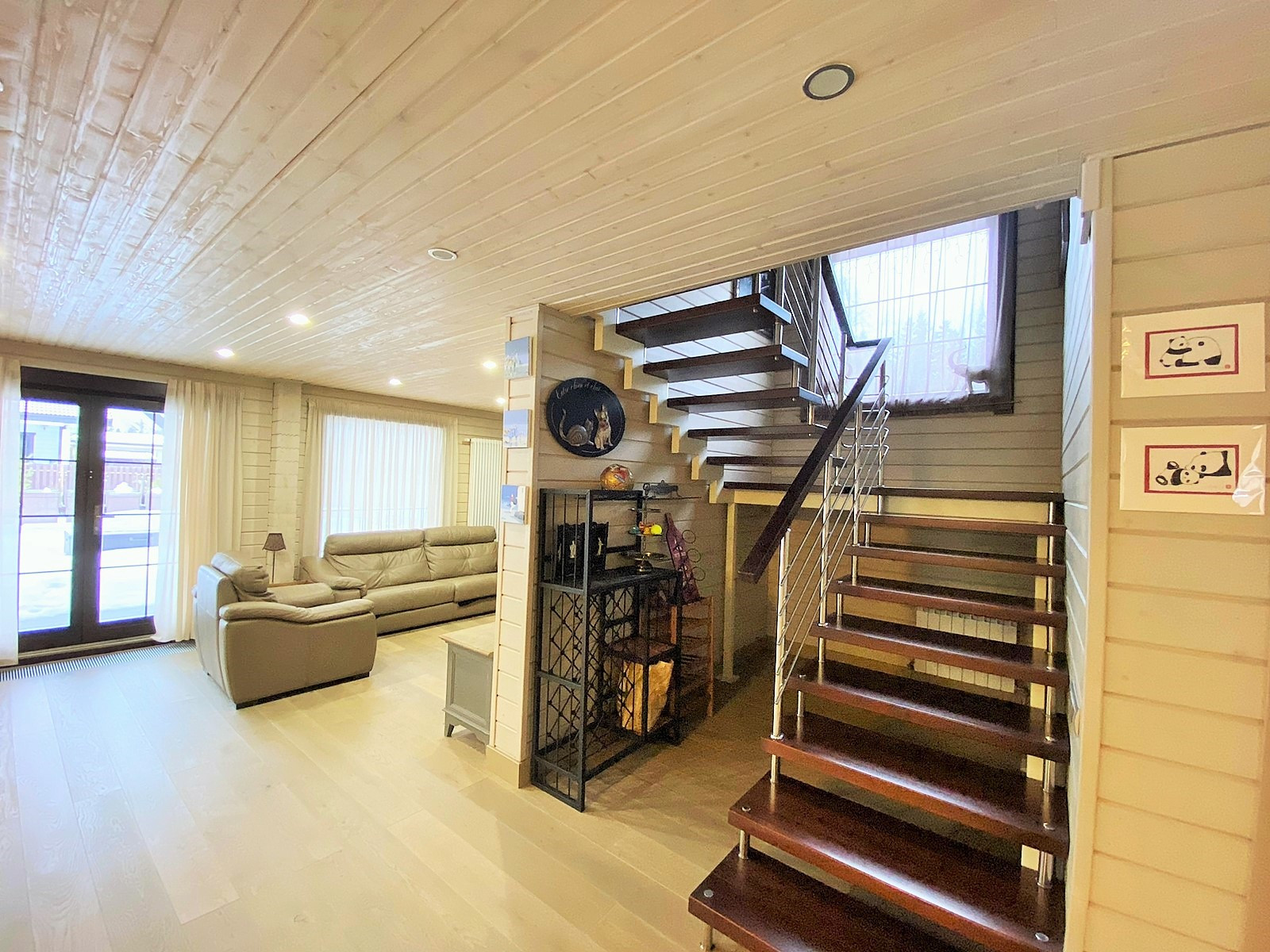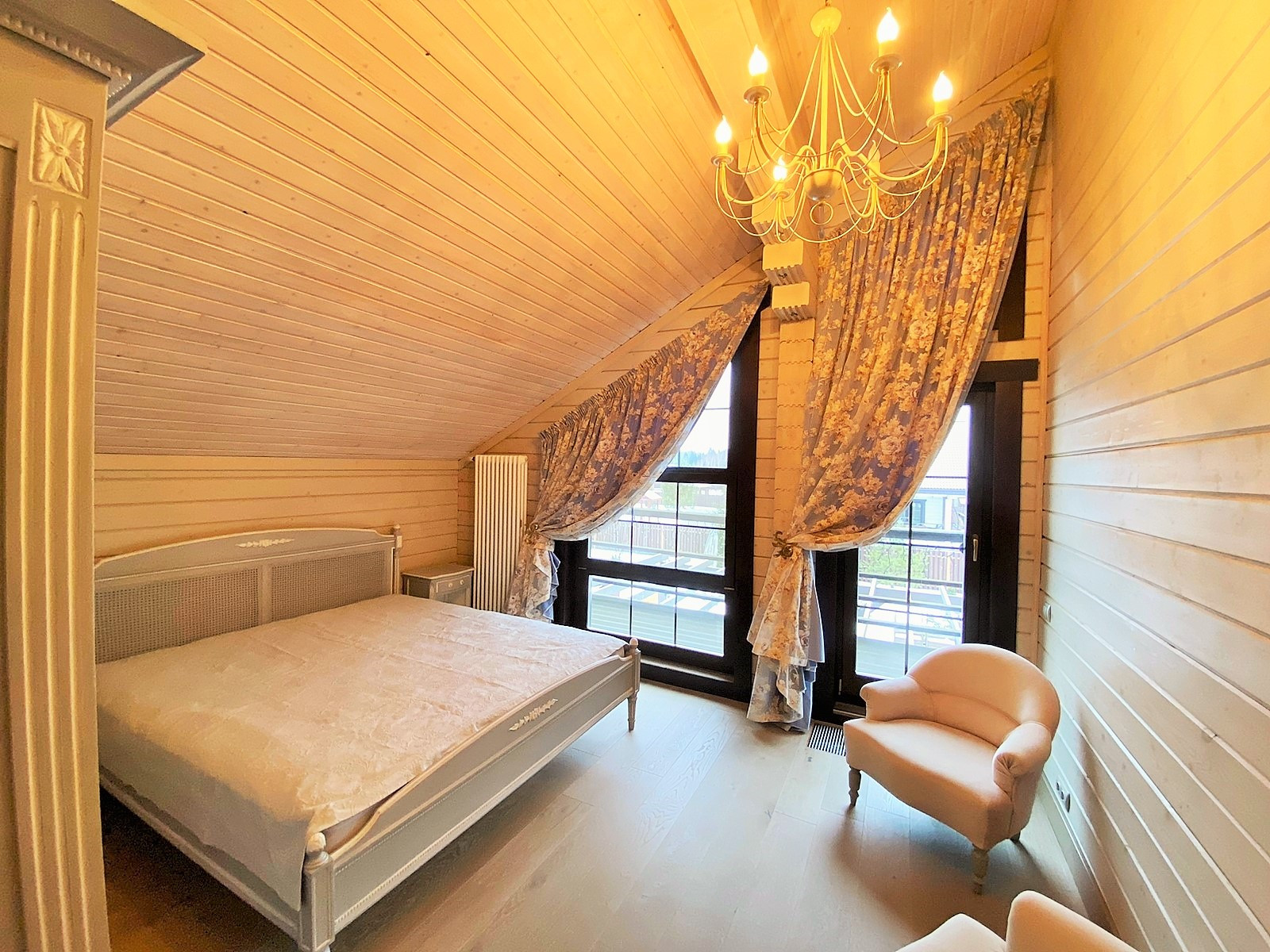 На первом этаже дома - кабинет, кухня, гостиная для отдыха и встреч, обеденная зона, с/у. На втором этаже - уютные три спальни с выходом на балкон, просторный с/у, кладовая. На веранде - качели, на участке - беседка..