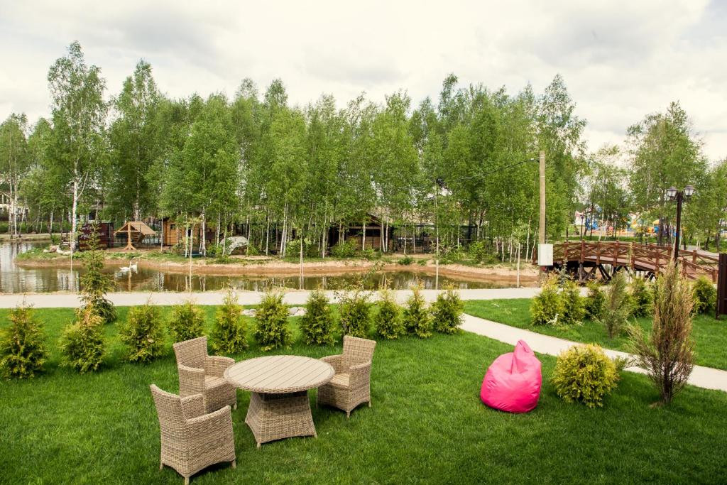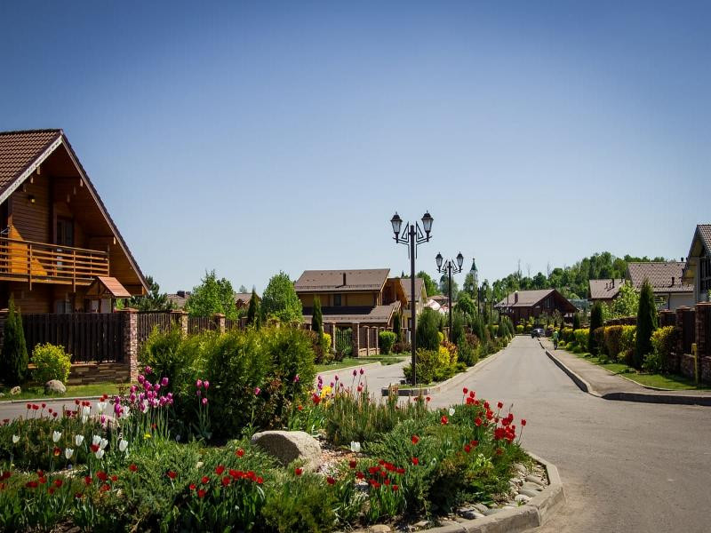 На территории: 4 озера с пляжем и местами для рыбалки, парки, сыроварня, зоопарк, детский клуб, SPA, ресторан, клуб-школа бриджа, скейт-парк, конгресс-холл, кинотеатр, автомойка.