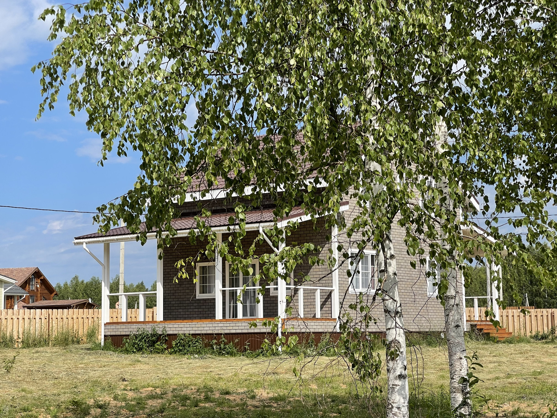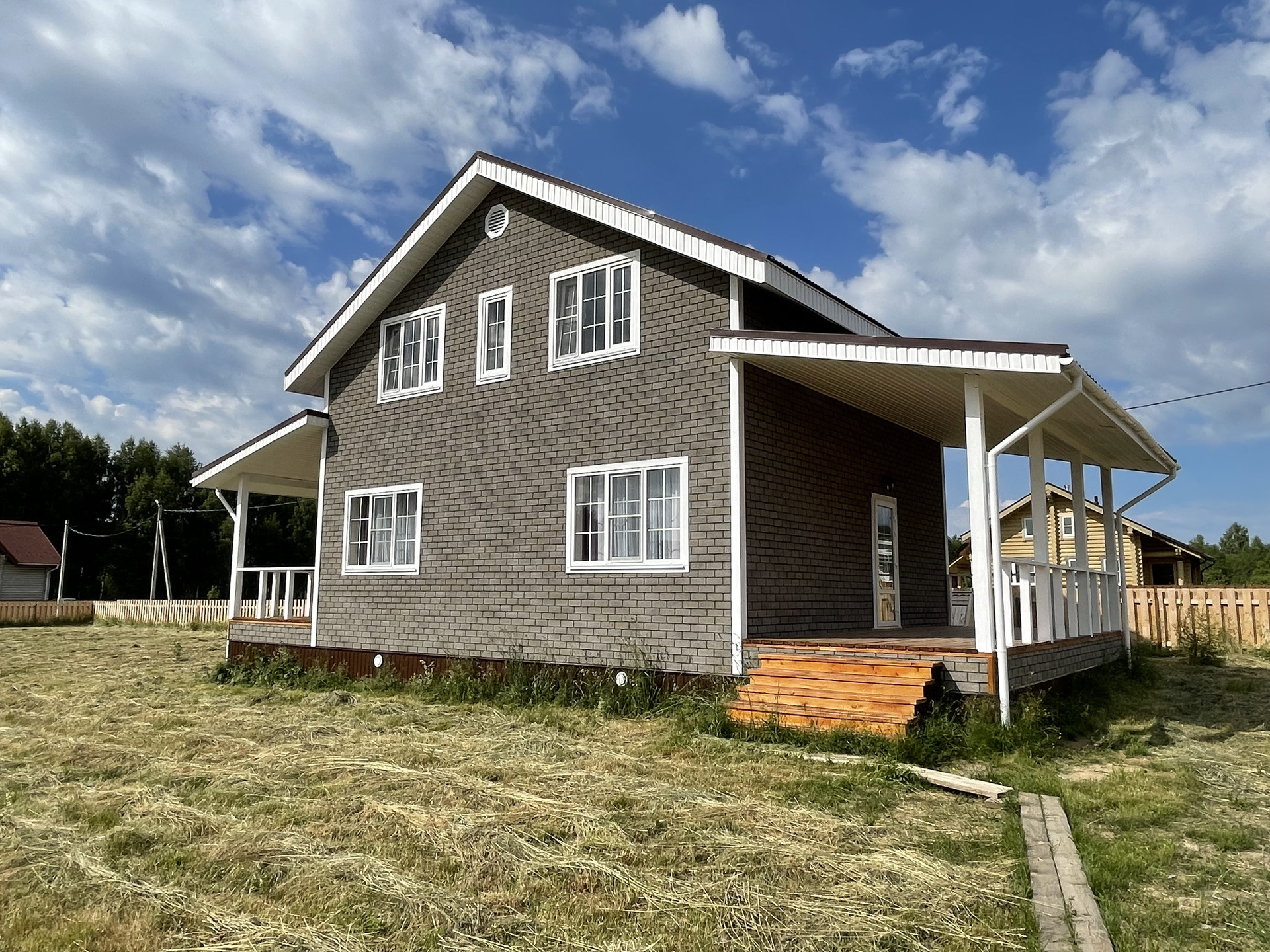 Дом в КП Рыбацкий рай. Каркас.Зимний контур . Пластиковые окна.Французские окна-двери с выходом на террасу. В доме две террасы. Дом построен из качественного материала. Фундамент - сваи. Отделка: пол ламинат, плитка, двери межкомнатные, встроенная кухня, коммуникации. Мебель новая: кровать, прикроватные тумбы, диван экокожа, стол, стулья массив. Сантехника, душевая кабина, холодильник, стиральная машина, все новое. Электричество прямой договор с энергосбытовой компанией. По периметру участка забор, въезд на участок. Шаговая доступность озера. Поселок круглогодичного проживания, охрана, находится в окружении реликтового леса, шаговая доступность двух лесных озер и озеро для купания с пляжем. Планировка: 1 этаж - тех.помещение, ванна/туалет, кухня/столовая/гостинная с выходом на террасу, комната. 2 этаж - четыре комнаты, ванна/туалет. Документы готовы. Свободная продажа.