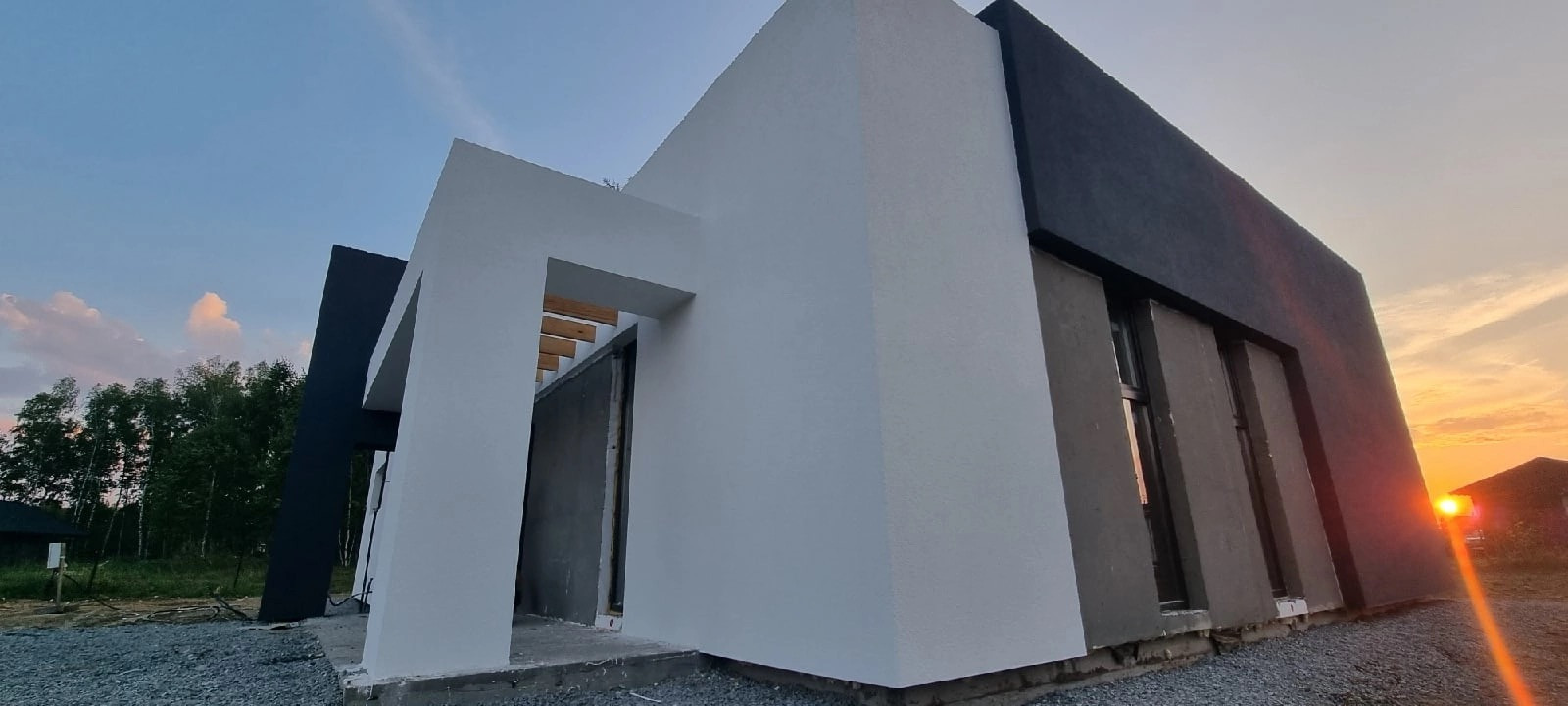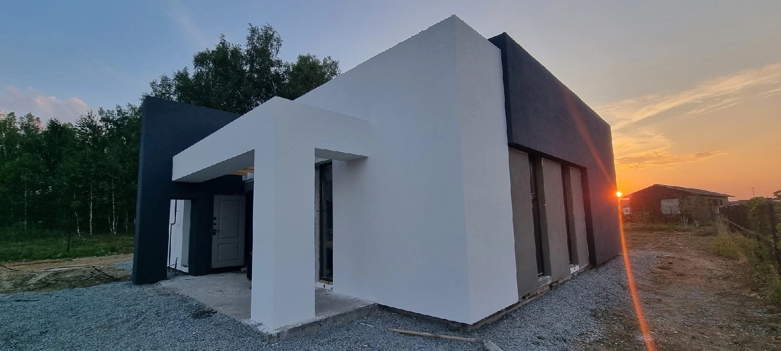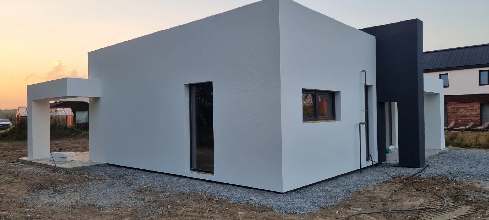 * Внешняя отделка фасадов и карнизов: декоративная штукатурка.