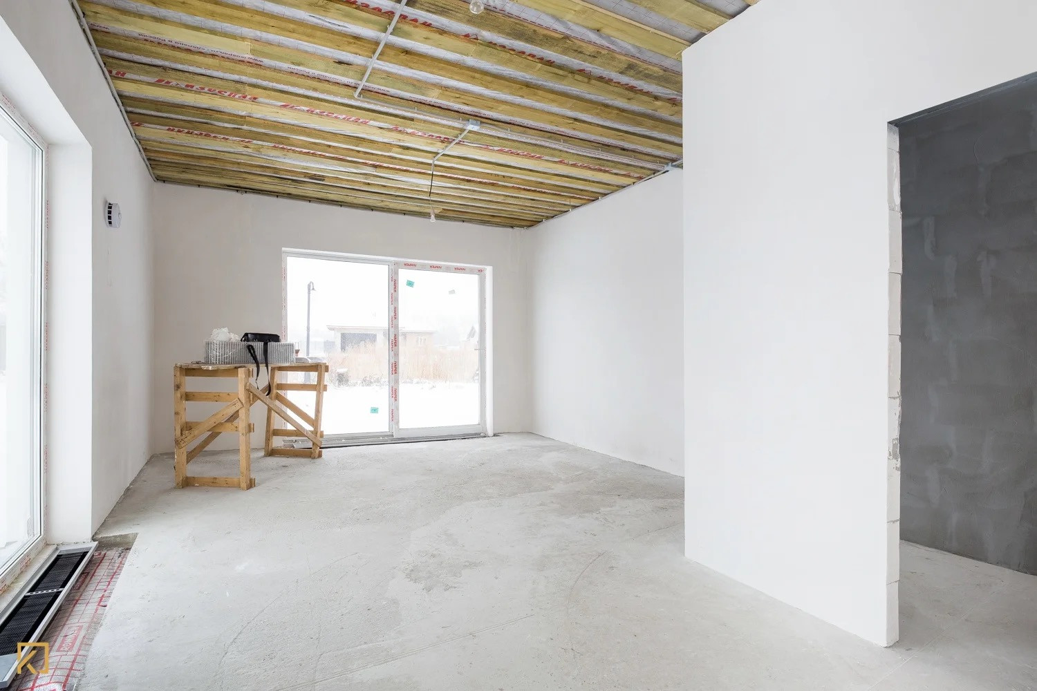 Стены: газобетон/кирпич, перегородки – газобетон 100 мм/ кирпич 120 мм