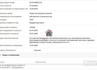 Продам земельный участок, Земля в собственности. Для индивидуального жилищного строительства (ИЖС). Есть разрешение на строительство Кадастровый номер: 02:15:080601:469 Земельный участок по адресу: Республика Башкортостан, Благовещенский муниципальный район, Сельское поселение Николаевский сельсовет, деревня Дмитриевка, улица Золотая, земельный участок 16 Объект... |