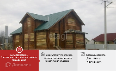 Дом в коттеджном поселке Сарафоново(145 домов) из оцилиндрованного бревна 22см. Строился для себя. Не завершен. Высота потолков: 1-й этаж - 3,2м, 2-й этаж - до 4,7 м. Кровля из металлочерепицы с утеплением, мембранами и подшивкой. Завершена конопатка сруба полностью, внутри и снаружи, обработка всех деревянных изделий и сруба огнебиозащитой. Сруб выстоян и дал необходимые усадки.