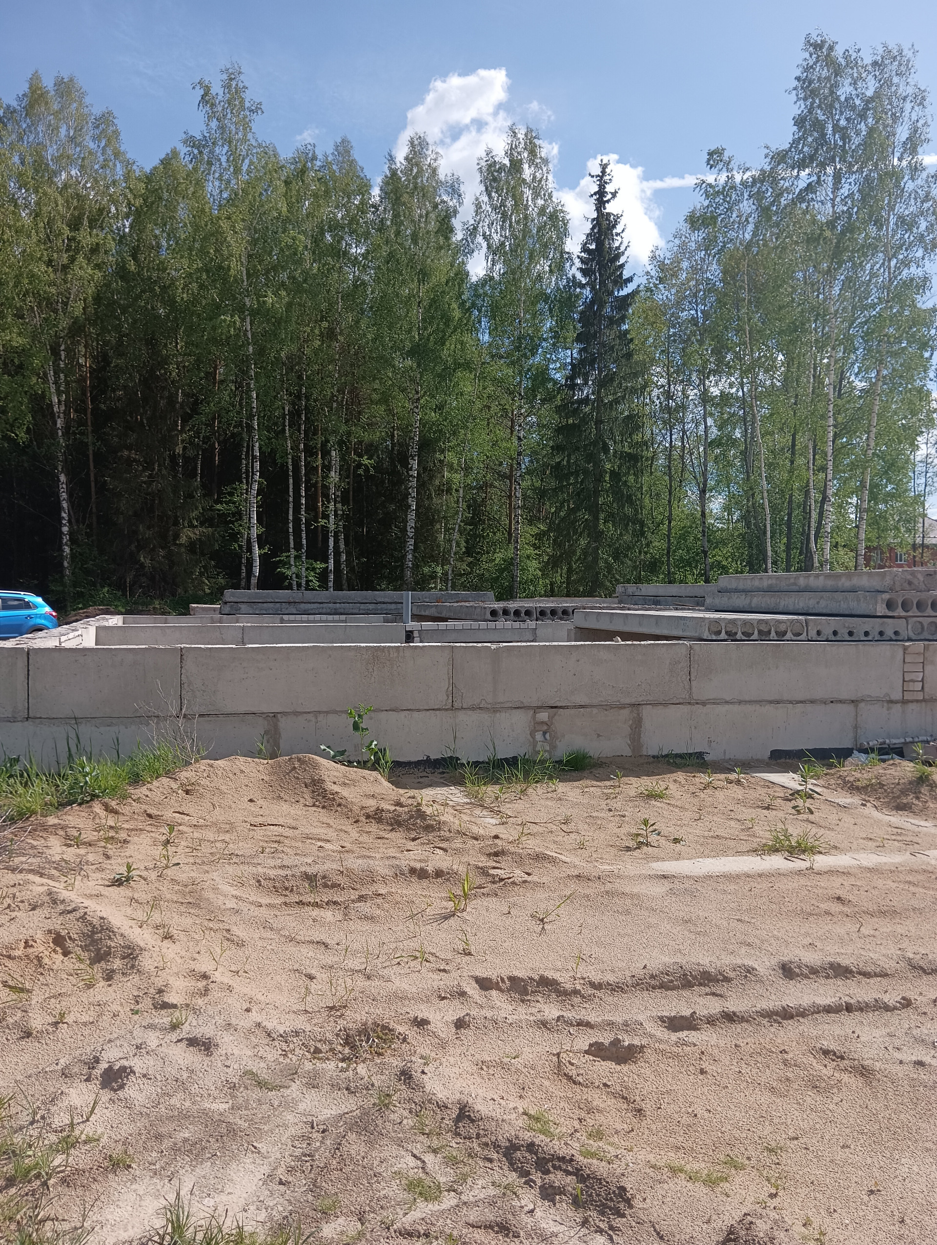 На участке началось строение дома.