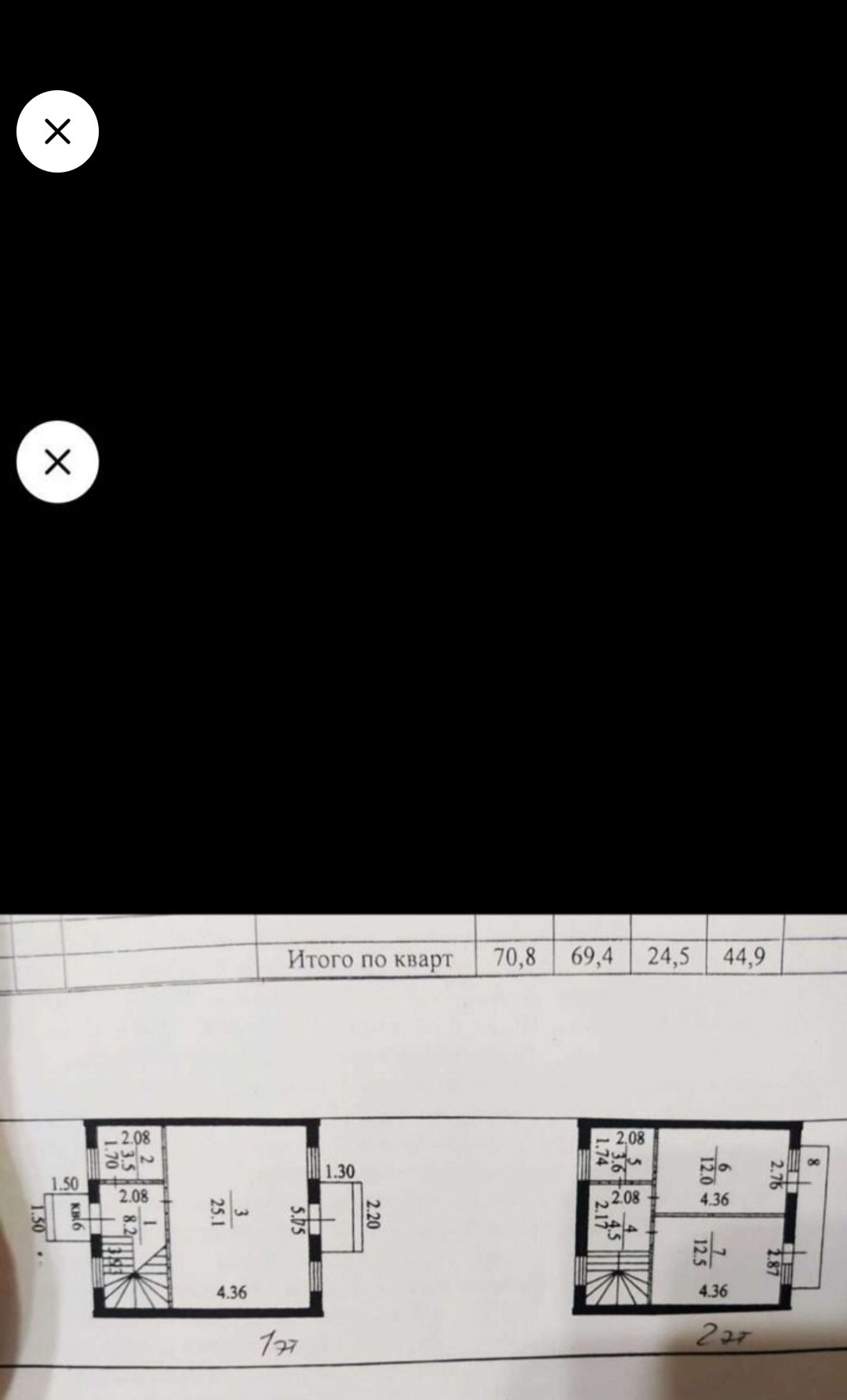 Общая площадь 70кв.м. На первом этаже кухня-гостиная 25 кв . Уборная комната . На  втором - этаже 2 комнаты и уборная. Планировка свободная !