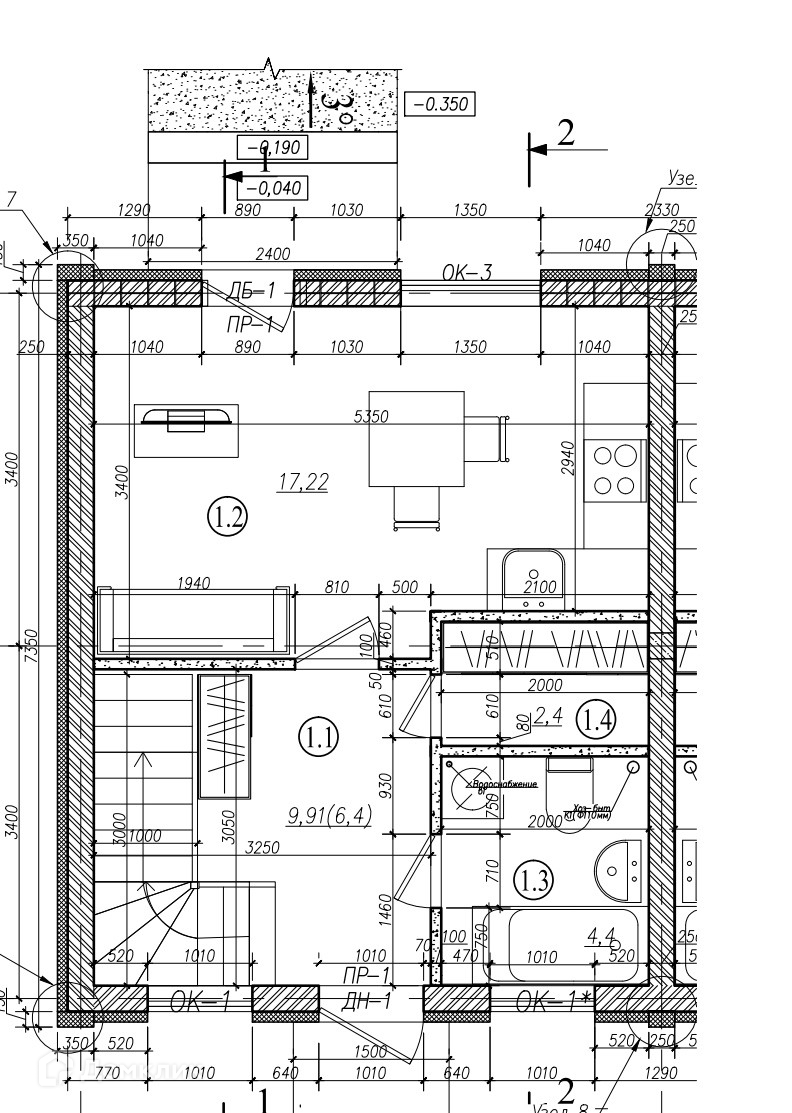Внутренние стены обшиты имитацией бруса, по периметру утеплены каменной ватой Rockwool. Окрашены лазурью, при желании можно перекрасить в любой цвет. На первом этаже проведены водяные теплые полы, на втором установлены радиаторы.