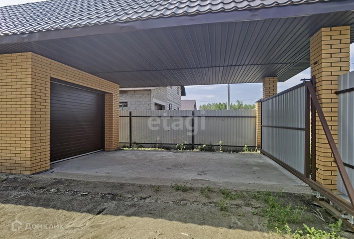 Имеется гараж и навес, ворота откатные, калитка, забор профлист.