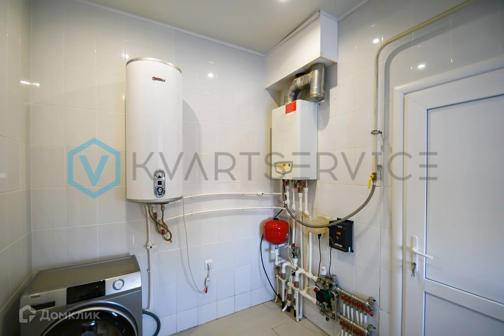 Дом подключен к центральным коммуникациям водоснабжения и электричества, отопление газовое, выгребная яма (септик).