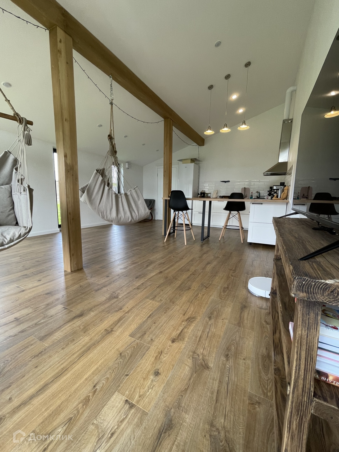 Большая кухня-гостиная 33,5 м.кв. позволяет разместить большую компанию, веранда как продолжение гостинной.