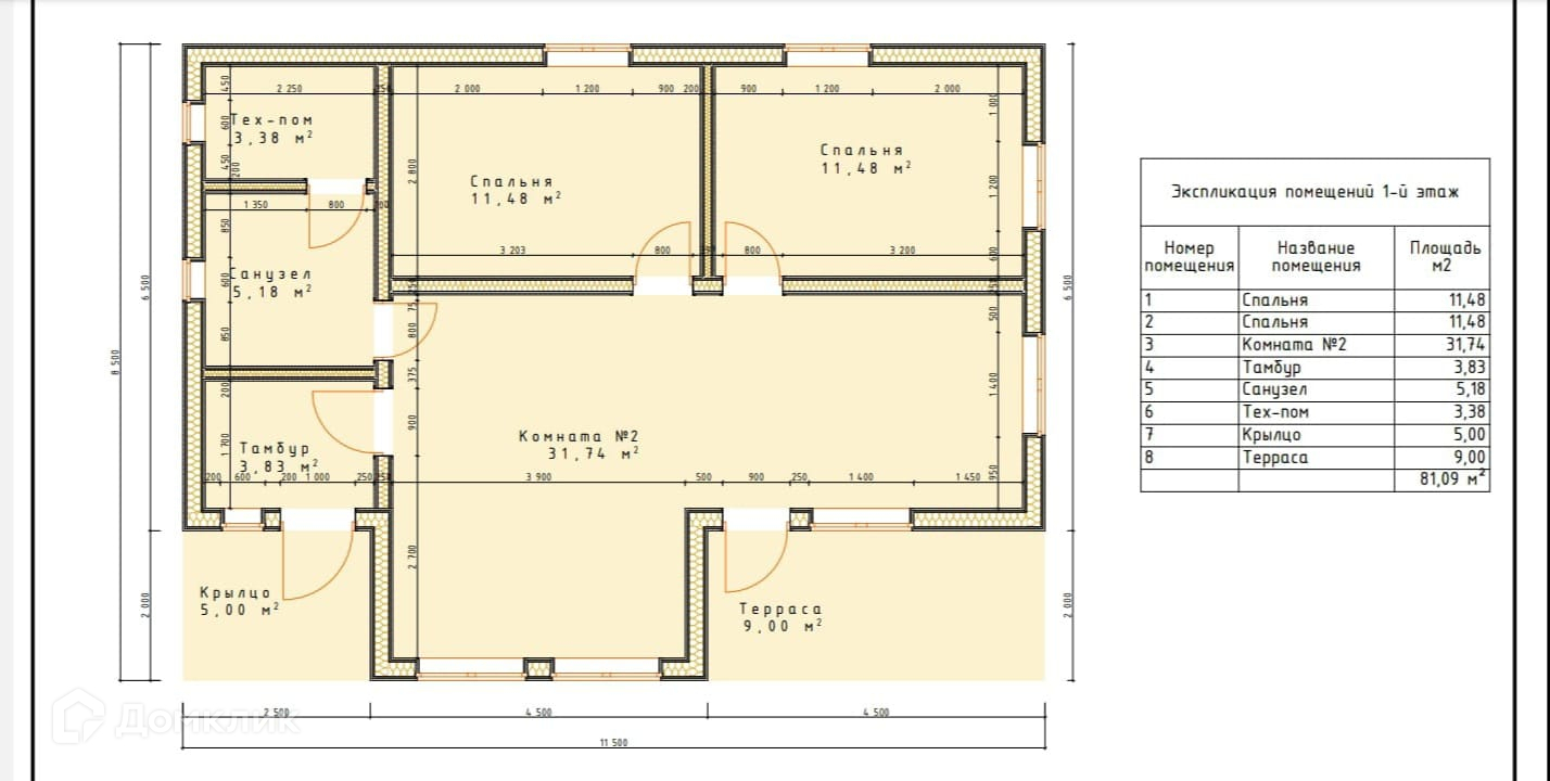Основные характеристики дома включают в себя две комнаты, общая площадь которых составляет 22,96 квадратный метров. Кухня, площадью 31,74 кв.м., просторная и удобная, переходящая в просторную гостинную с панорамными окнами из качественной фурнитуры Rehau.