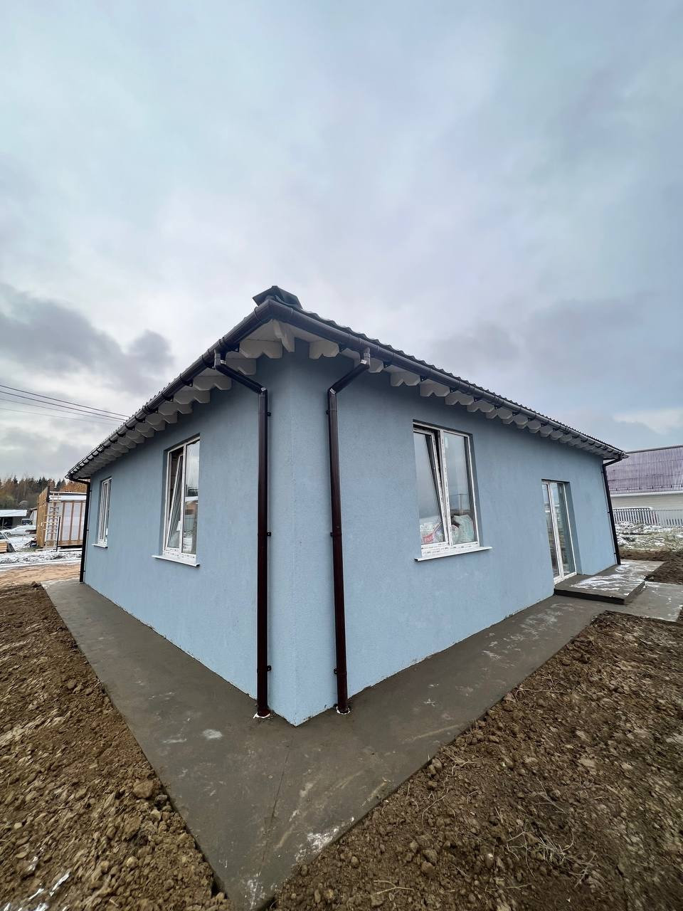 -Дом выдержан в современном стиле, построен из качественных материалов, грамотная, удобная планировка. Крыша четырехскатная с красивой узорной подшивой.