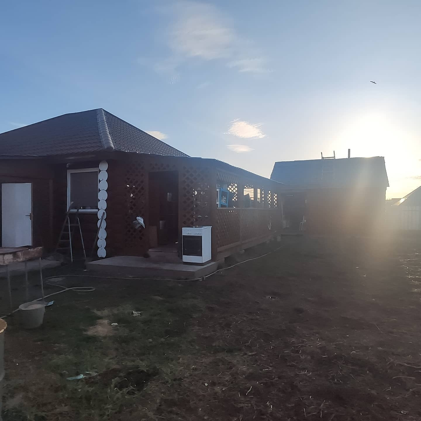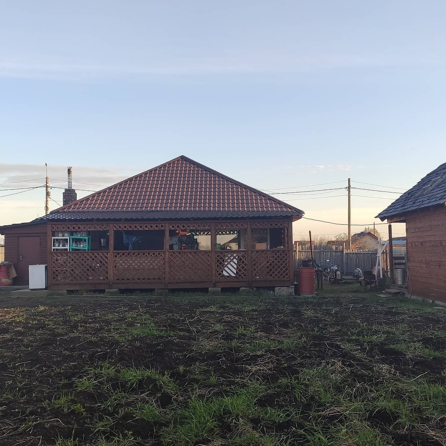 Во дворе баня из осины (не выделяет смолу).