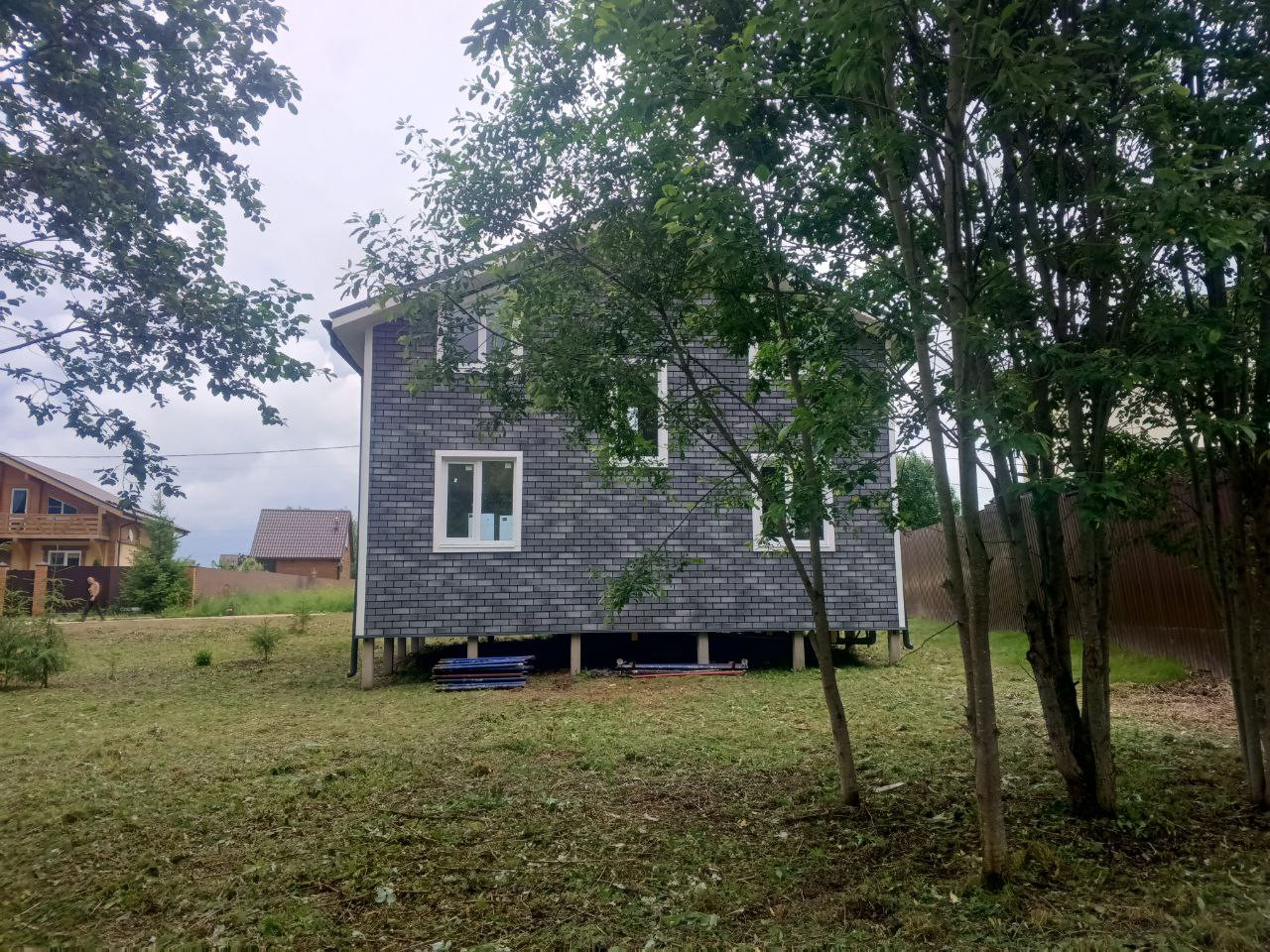 Дом: Новый двухэтажный дом с центральными коммуникациями 127.1м.кв. 2024г постройки, для круглогодичного проживания, зарегистрирован как жилой, возможно прописаться. 1й этаж: кухня-гостиная 22.07м.кв, спальня 9.11м.кв., сан.узел 3.86 м.кв., прихожая 4.5м.кв., бойлерная тех.помещение 5.77 м.кв., холл 11.36 м.кв., крыльцо 3.17 м.кв. Комфортная деревянная лестница на второй этаж. На 2ом этаже удобно расположились 3 не проходных комнаты (13.79м.кв., 13.79м.кв. и 11.21м.кв.), гардероб, сан.узел, холл 6.56 , большой балкон 8.53 м.кв. Отопление в доме электрическое. Железобетонные сваи. Крыша - металлочерепица . Утепление 200мм. Коммуникации: Водоснабжение – центральные, Канализация – центральная. Электричество - 15кВт.