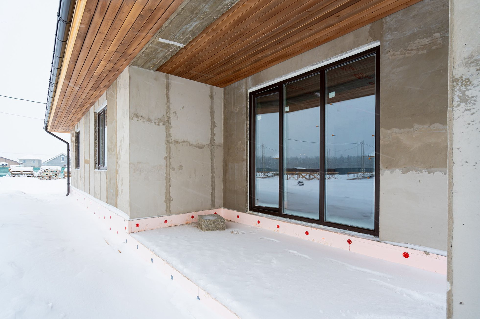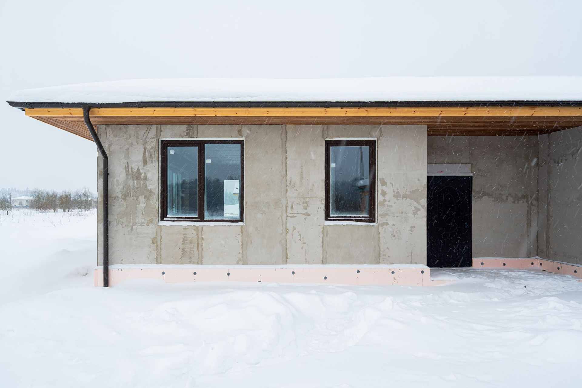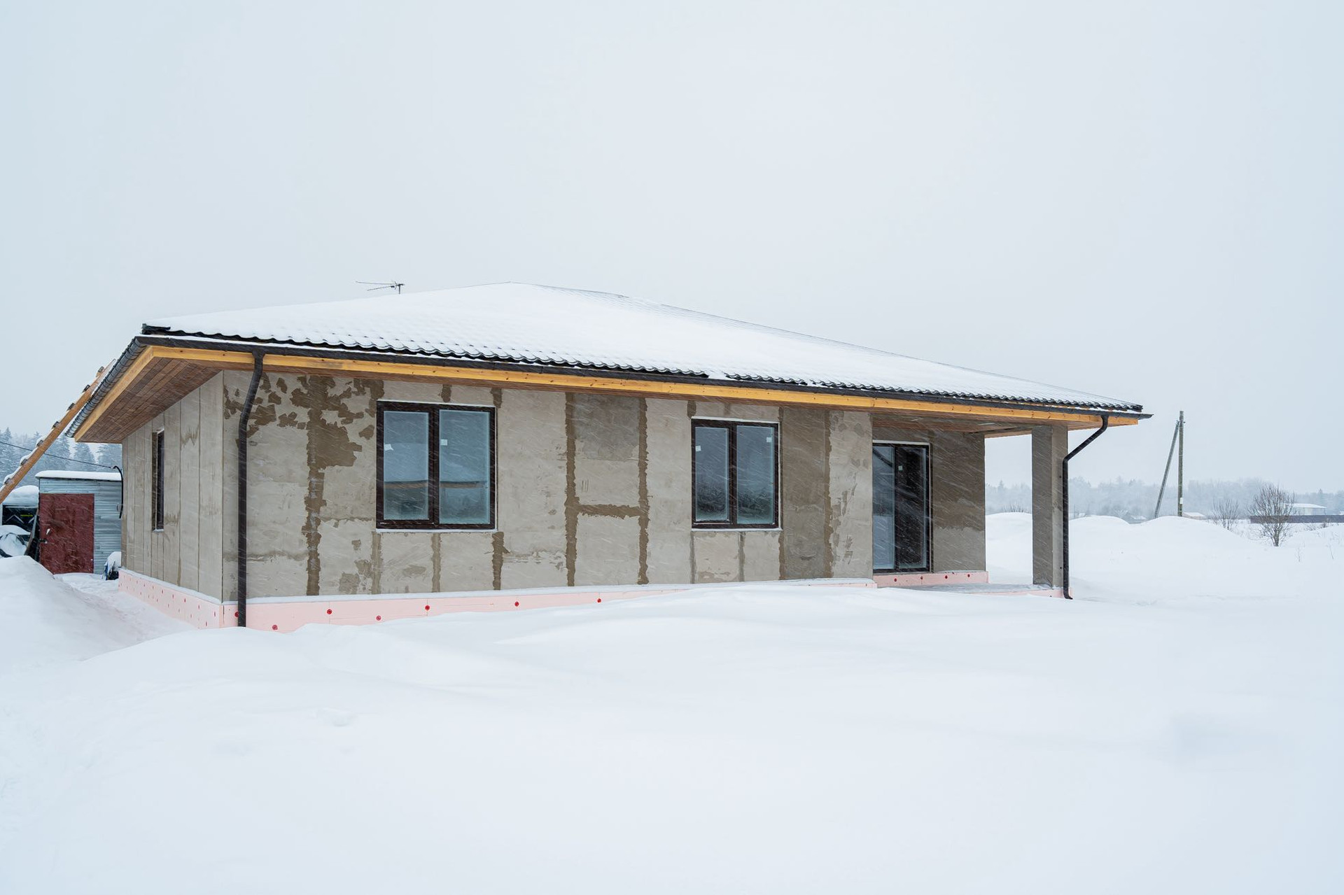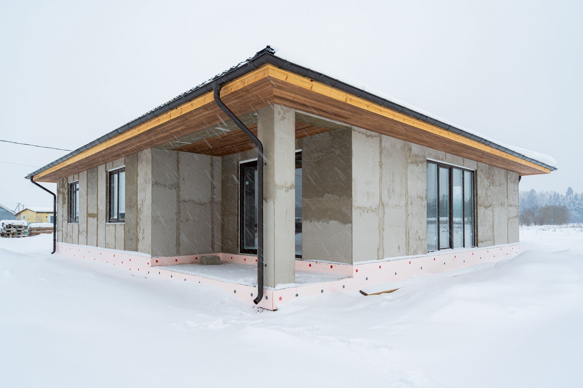 Дом выполнен из экологически чистых («дышащих») древобетонных блоков, обладающих прекрасными тепло/шумо изоляционными свойствами.