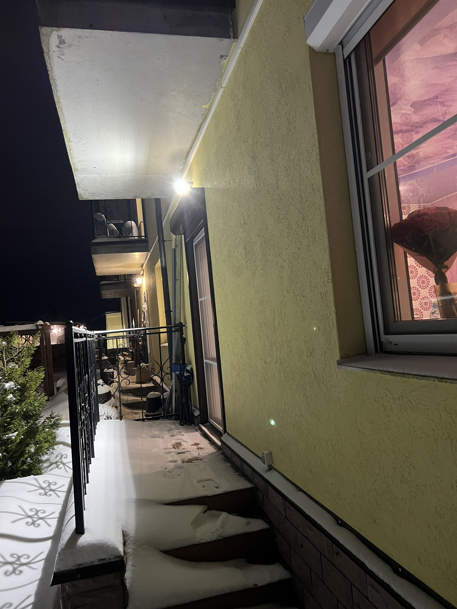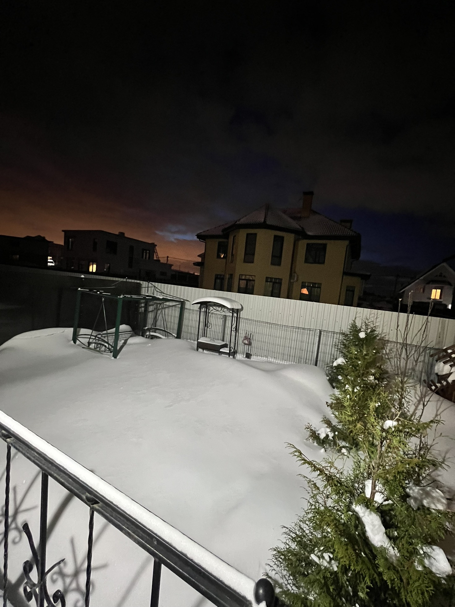 Мангал, качели, песочница, туи, выведено водоснабжение для полива, а также розетка и освещение. На территории во дворе видеонаблюдение, а так же электрические роллеты на окне и двери.