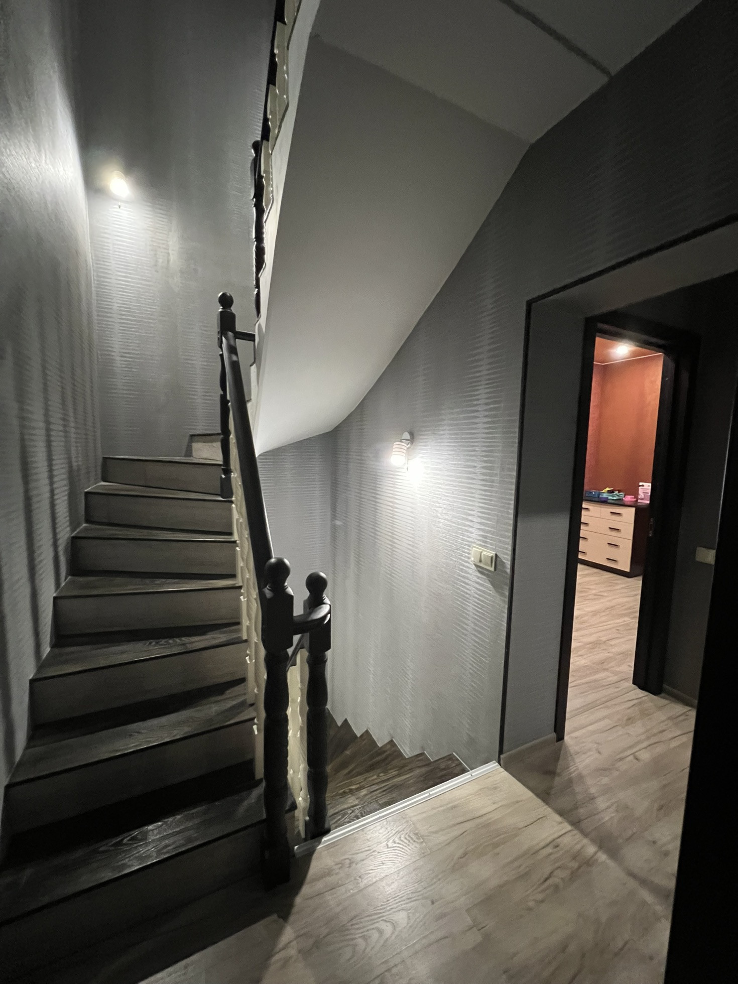 Монолитная бетонная лестница, отделанная деревом.