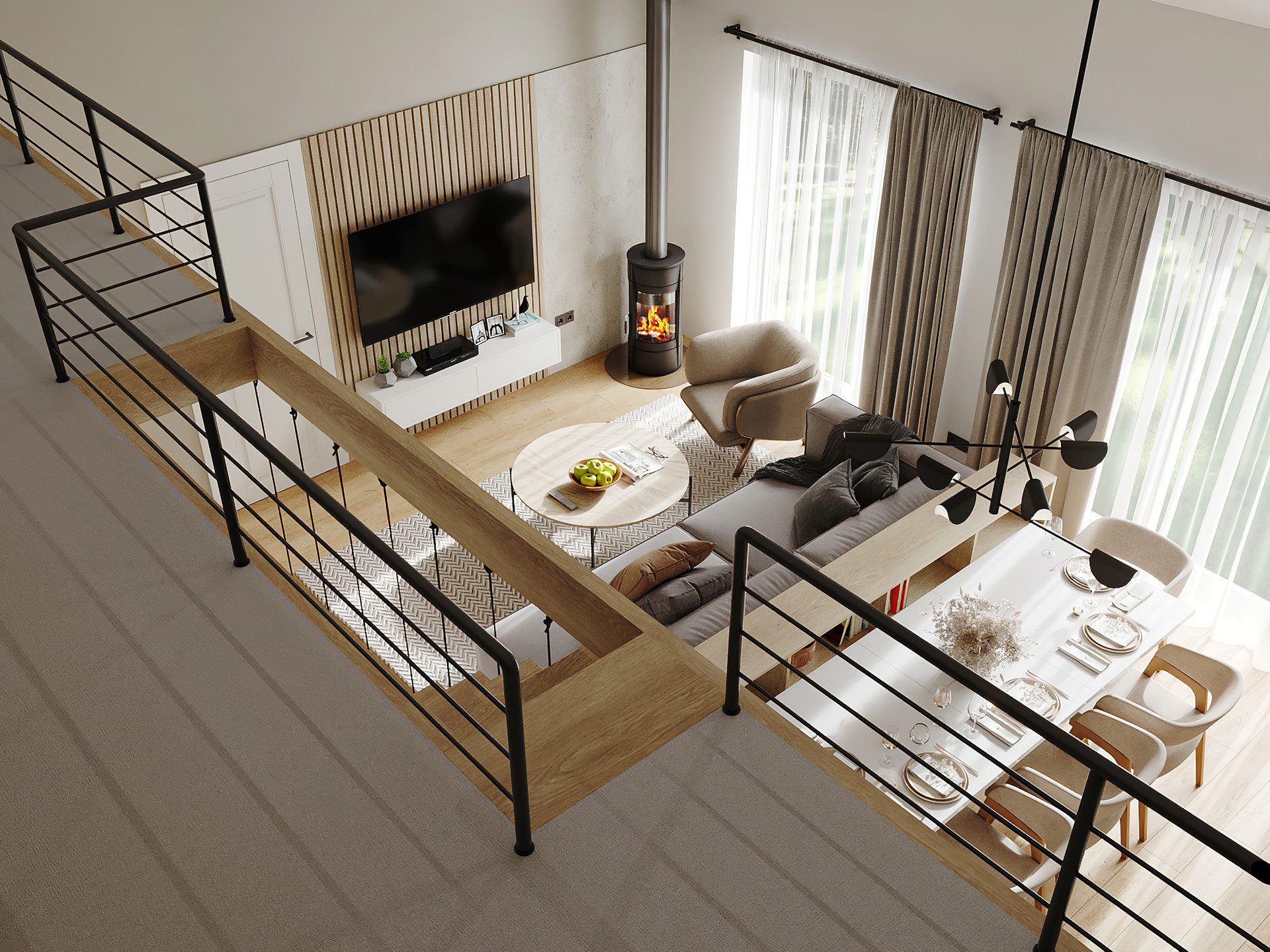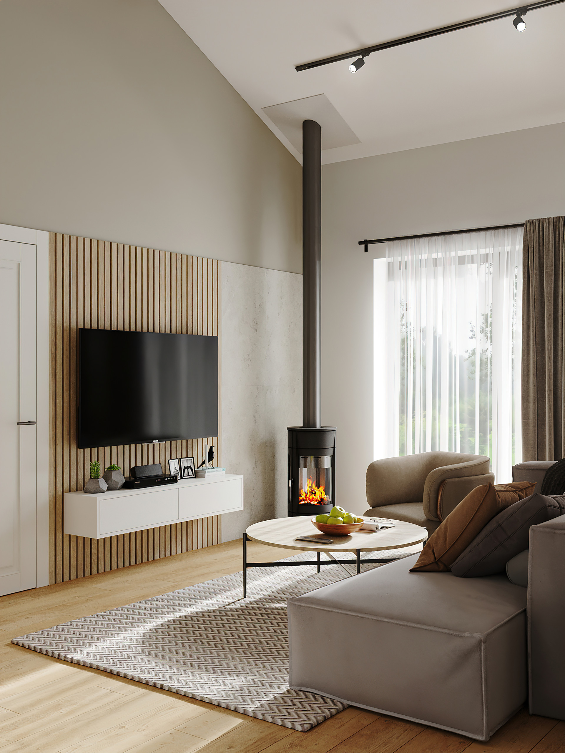 - настоящий дровяной камин для уютных семейных вечеров в гостиной;