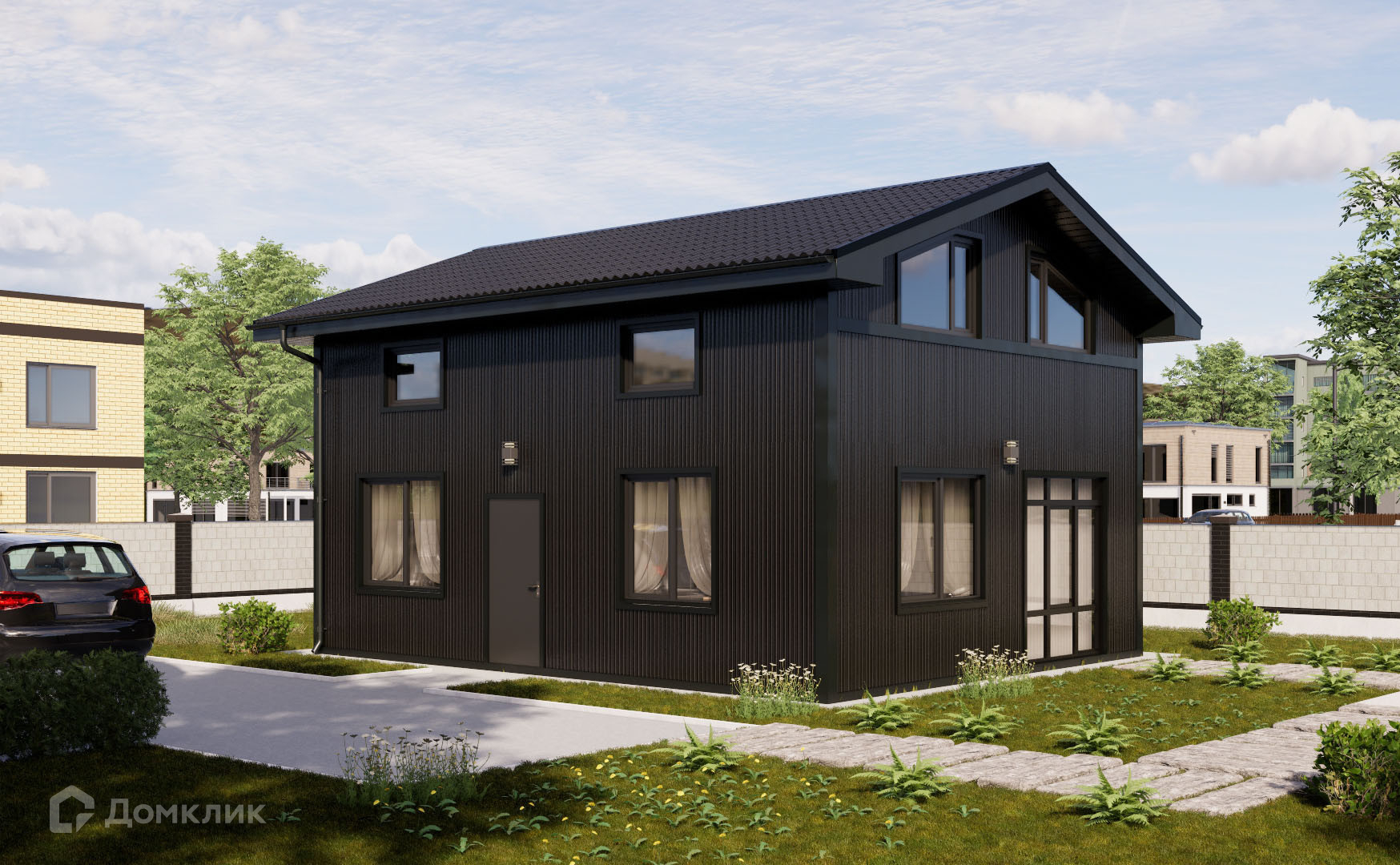 Покупателям предлагаются коттедж в скандинавском стиле площадью 111 кв.м, двух этажный . Дом с подчистовой отделкой. Также есть возможность заказать чистовую отделку. Высота потолков достигает 2,8 м. У каждого коттеджа есть своя придомовая территория, участки 6 соток.