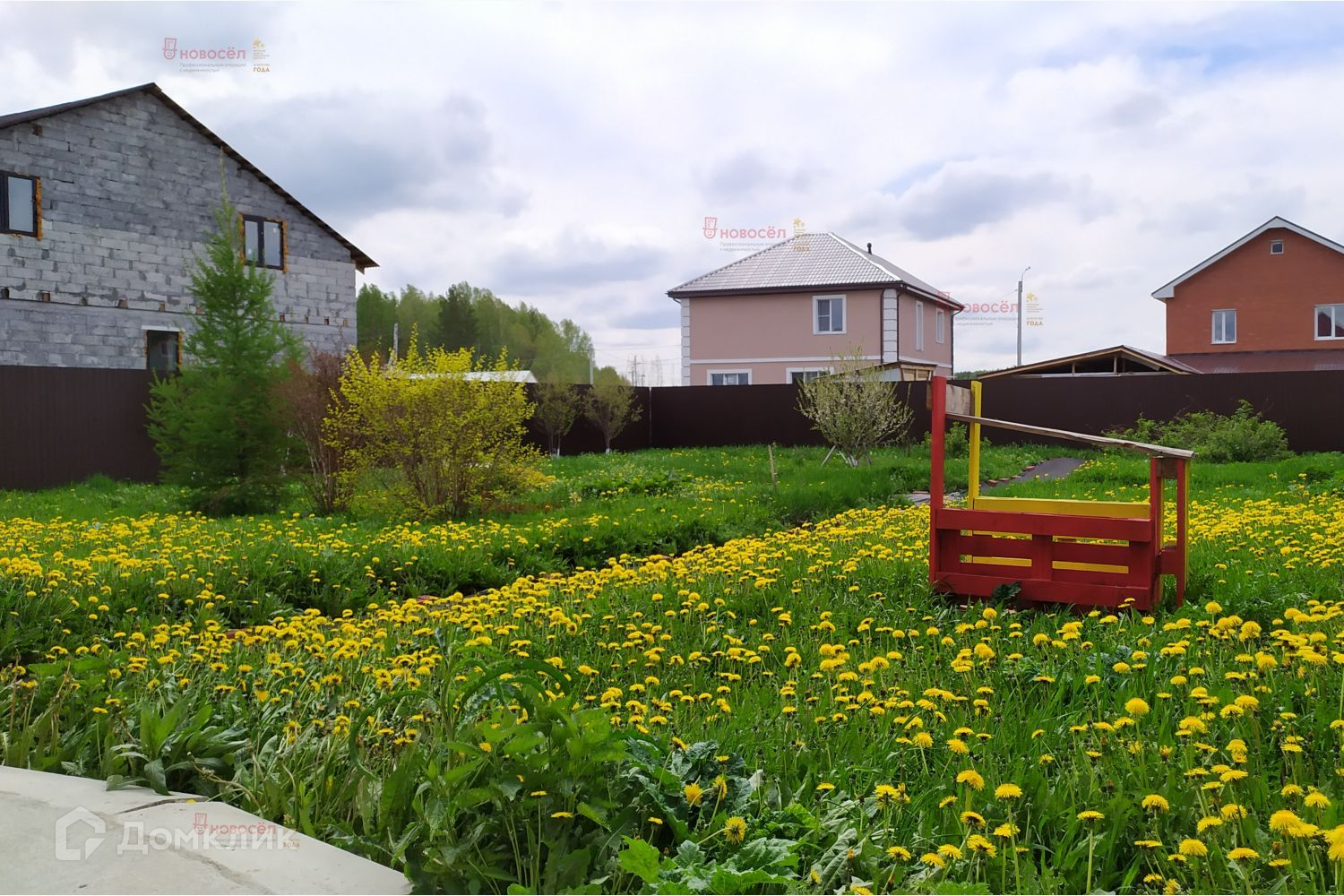 Земельный участок 11 соток правильной прямоугольной формы, огорожен забором, территория выровнена, был завезен дополнительный слой плодородной почвы и посажены плодовые деревья и газонная трава. Куплен евроштакетник на забор.