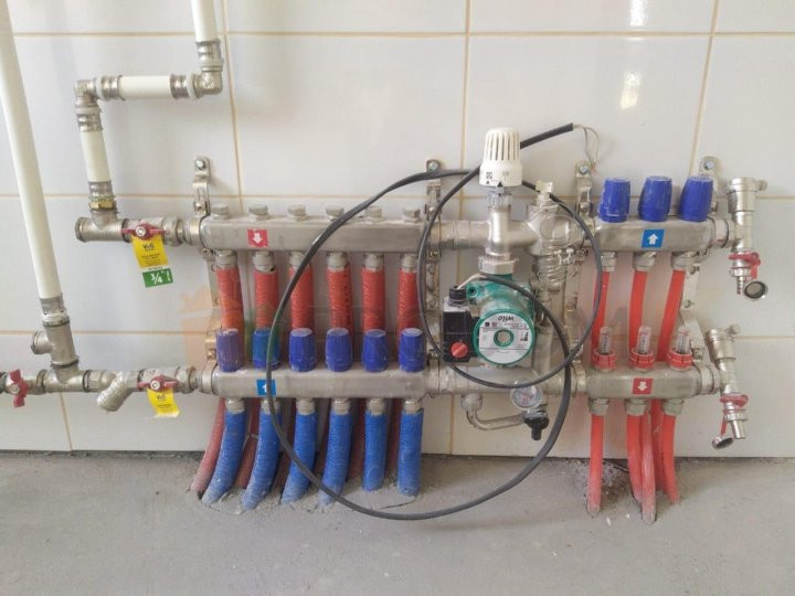 Коммуникации: заведено электричество 15 кВт, по периметру участка газ, отопление в прихожей зоне «теплый пол», в остальных комнатах радиаторы. Эл.котел, установлен циркуляционный насос, коллекторы, водонагреватель на 100 литров, на оборудовании не экономили. Оборудован септик. Своя скважина глубиной 45 м.