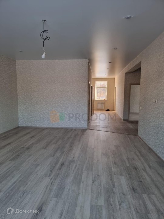 Отделка "под ключ": прихожая - керамическая плитка, комнаты - ламинат, установлены натяжные потолки, межкомнатные двери, обои. Установлены оконные