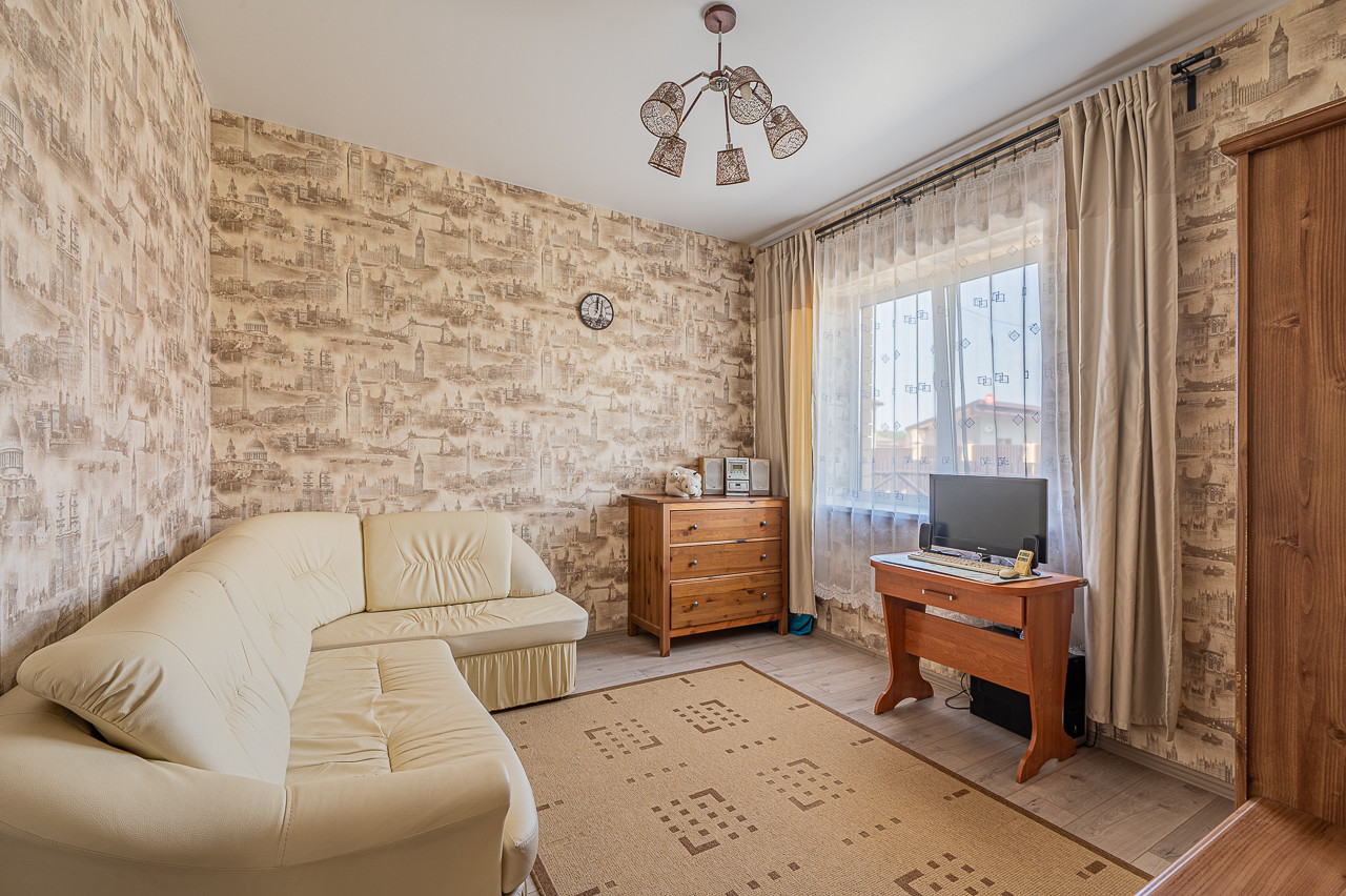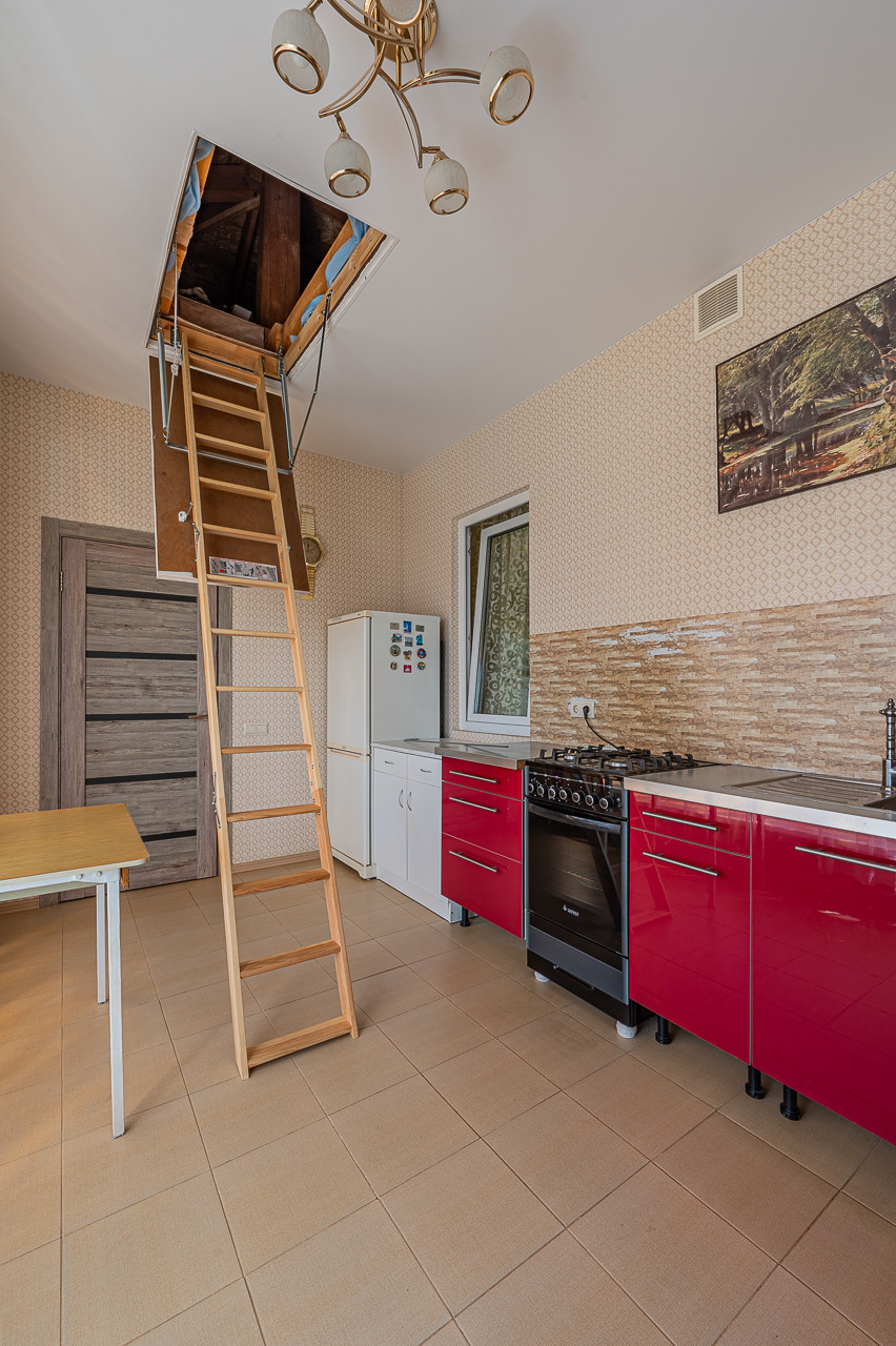 2 спальни, 1 гостиная, полностью оснащенные - кухня и отдельная столовая. Со стороны столовой имеется летняя веранда с выходом в сад. Из столовой - доступ на чердачную часть дома благодаря складной телескопической лестнице. При входе в дом  отдельная техническая комната с отопительной системой, бойлером, прачечной.