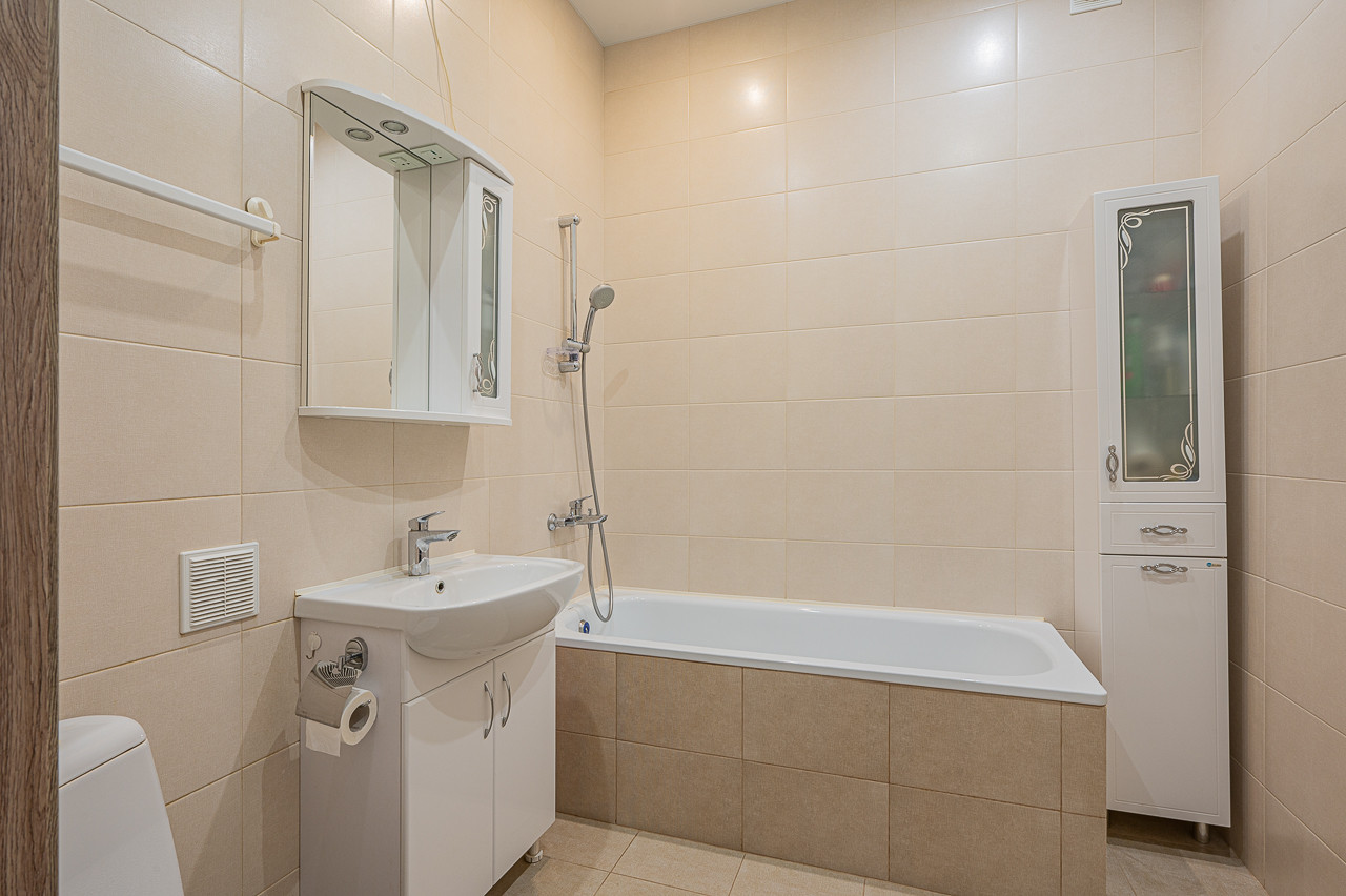 Сантехника, встроенная мебель   надежные и комфортны в пользовании. Мебель и техника в кухне  новые.