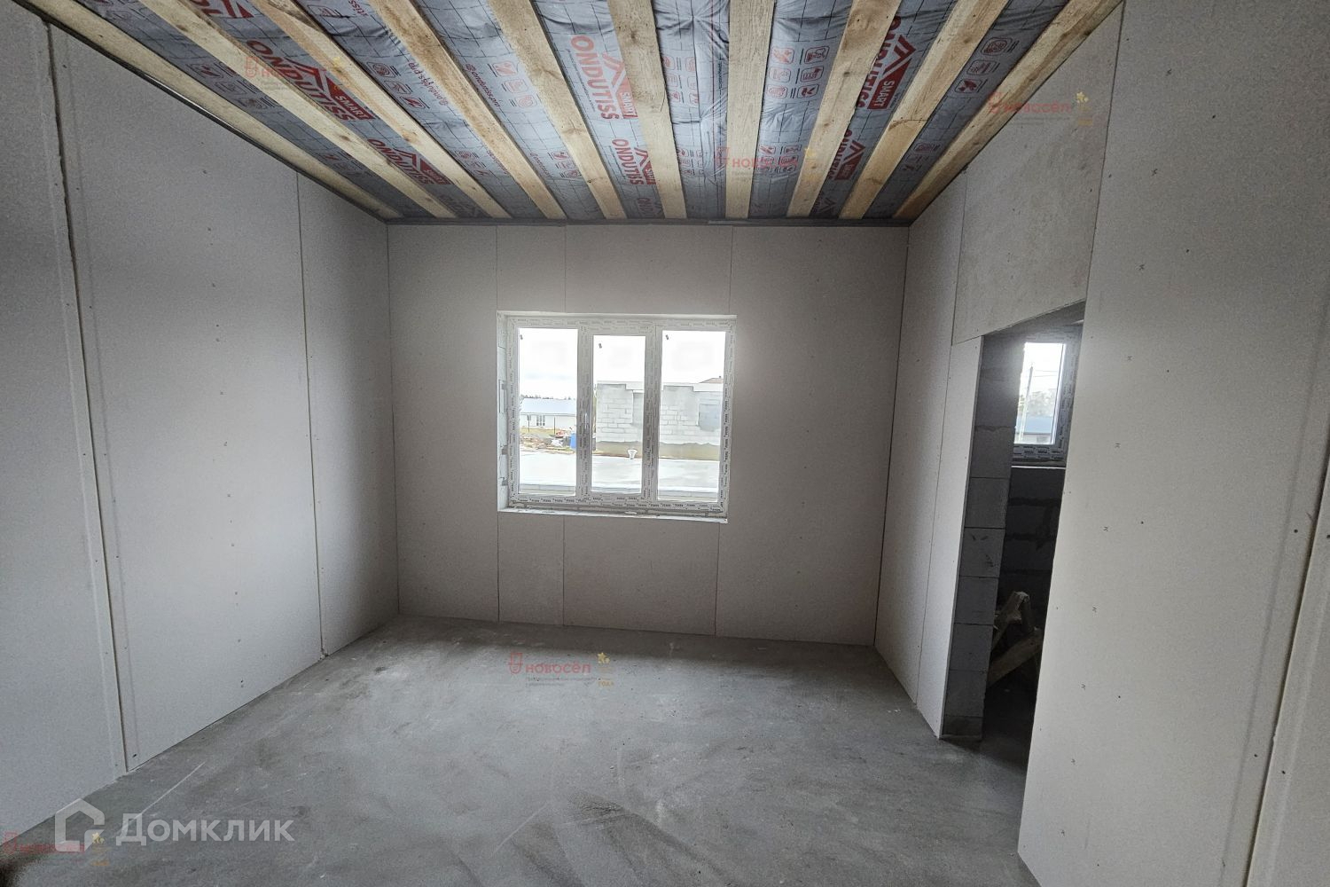 С полностью чистовой отделкой: обои, ламинат, натяжные потолки. Инженерные сети заведены: газ, электричество, скважина, септик.