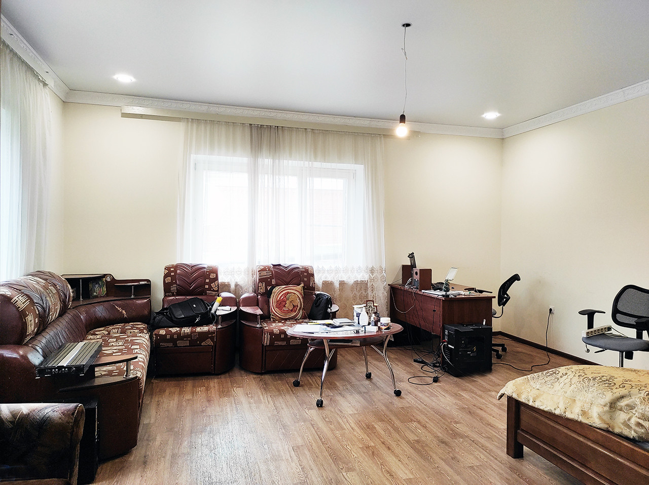 На цокольный этаже дома располагается санузел с душевой и тех. комнаты, 1 этаж полностью жилой, с ремонтом, мансардный требует чистовой отделки.