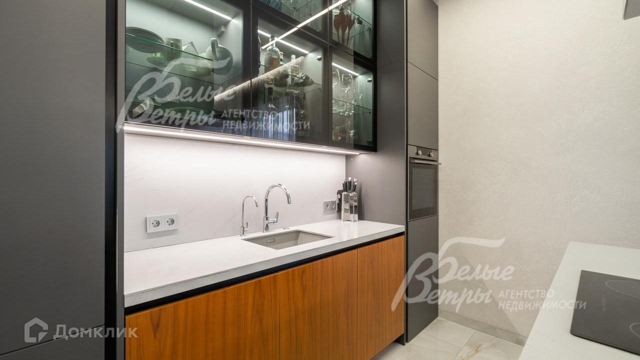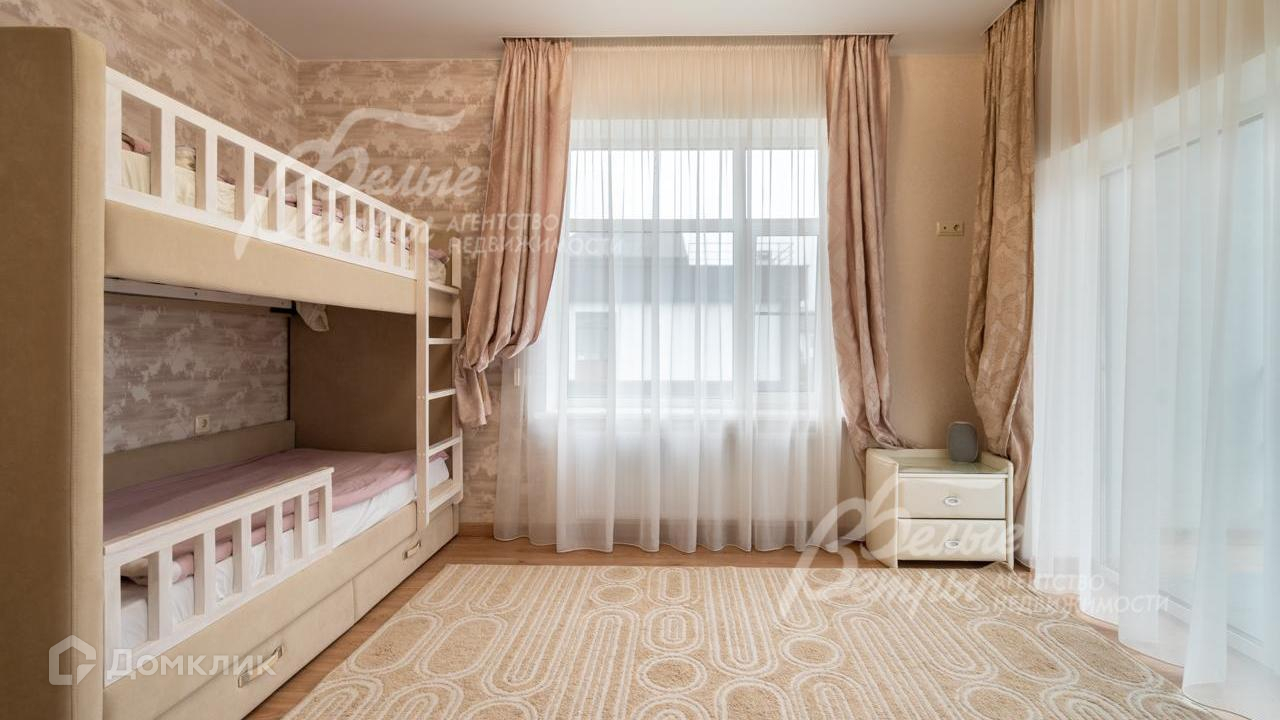Мебель, оборудование: кухонный немецкий гарнитур с фасадами МДФ цвета графит и орех, верхние фасады - тонированное стекло, остров шириной 1.8 м и полу барный стол на 3 чел. Вся встроенная техника ASKO: духовой шкаф с функцией пароварки, посудомоечная машина, холодильник. Итальянская вытяжка FABER. Кофемашина. Столешница из кварцевого агломерата. В котельной морозильная камера Gorenje. Дизайнерский обеденный стол из массива на 8 персон, стулья. В гостиной диван Белорусской фирмы Белфан, этой же фирмы из массива весь спальный гарнитур и комоды в мастер-спальне. В детских мебель Mr.Doors, гардеробная Кардинал. В детской спальне - двухъярусная кровать..