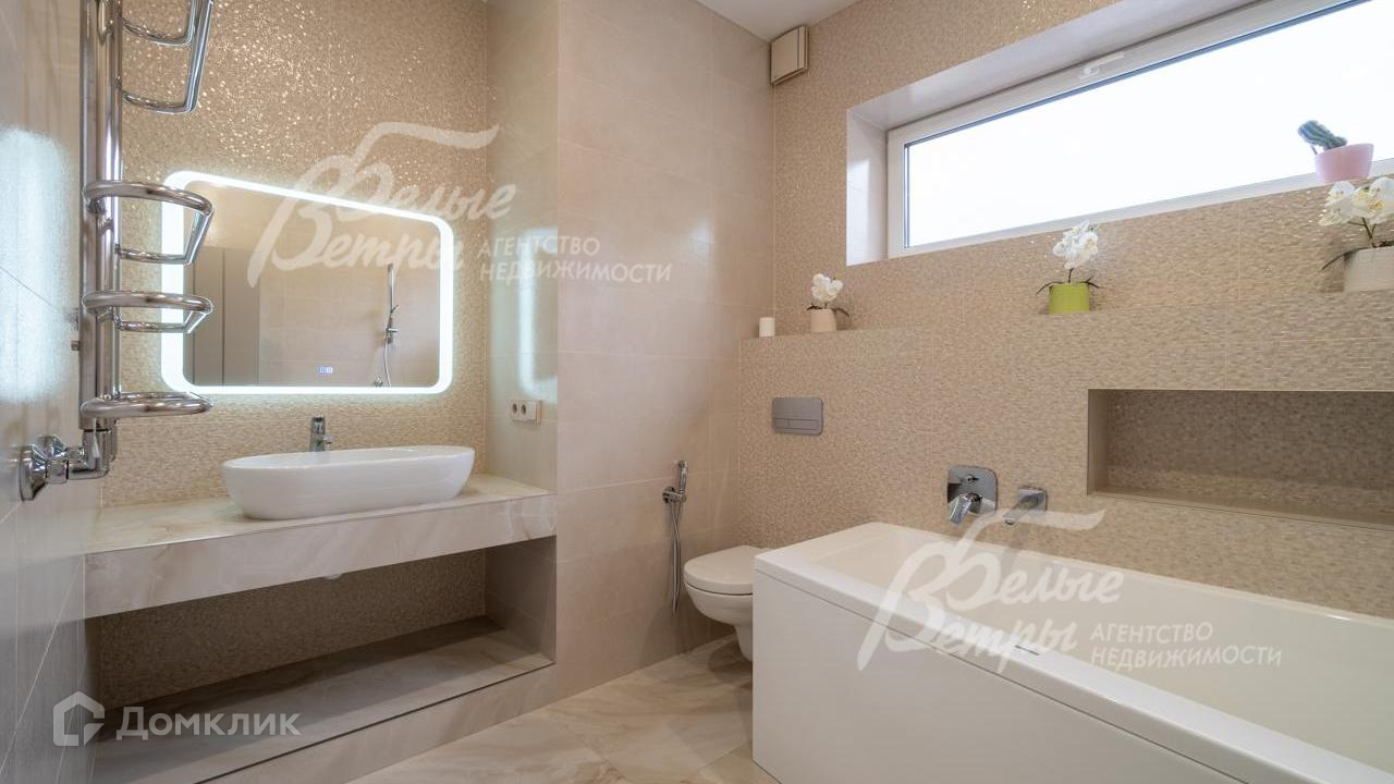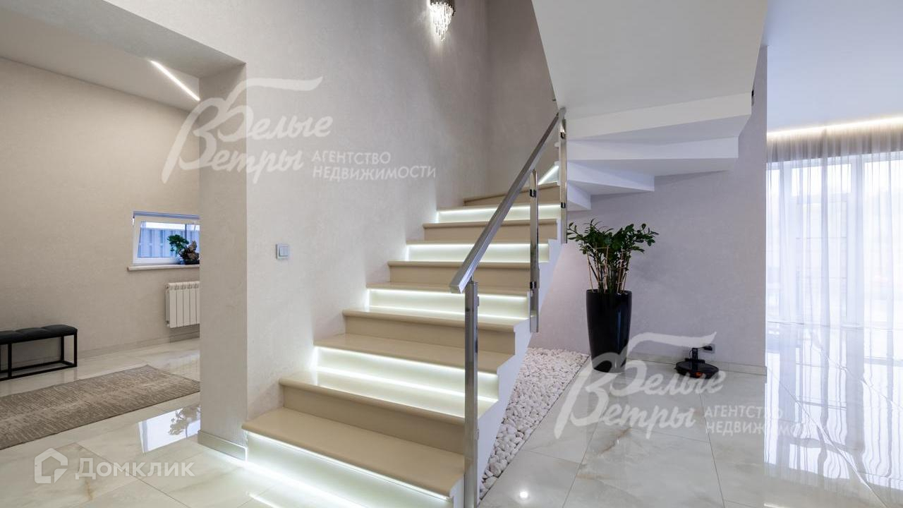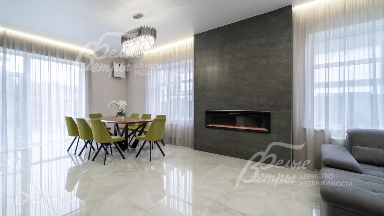 Внутренняя отделка: выполнена современная стильная отделка с использованием премиальных материалов из Италии и Испании. На стенах - декоративная штукатурка, в спальнях - обои, при входе в дом декоративная стена из стабилизированного мха. На полу на 1 этаже итальянская и испанская плитки, на 2 этаже - премиальный ламинат. Железобетонная монолитная лестница, шириной 120 см, цельные ступени из керамогранита, с подсветкой, ограждение - нержавеющая сталь и стекло. Натяжные потолки со встроенным освещением и отдельными эффектными люстрами. Установлена премиальная сантехника марок Catalano, VilleroyBoch, Excellent, смесители Paini, Hansgrohe. Теплые полы по всему 1 этажу, на 2 этаже - в санузлах и на балконе в мастер-спальне. Входная дверь металлическая с терморазрывом, высотой 2.3м, с входом по коду и отпечатку пальца, с возможностью удаленного управления. Межкомнатные двери София. Декоративный электрический камин шириной 1.5 м, с возможностью обогрева и без, с подсветкой разных цветов, встроен в огромный портал шириной 2.5 м и высотой до потолка, отделанный керамогранитом..