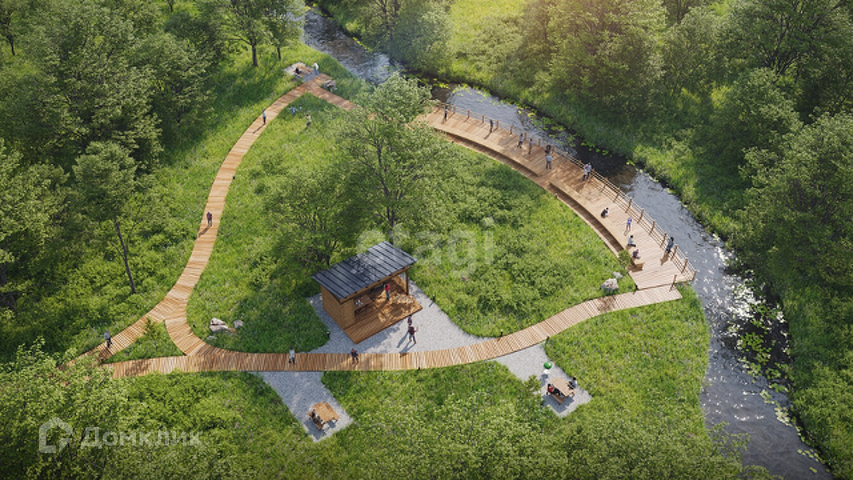 В поселке будут зоны отдыха и спорта интегрированы в лесное окружение без вреда для природы, а также, пять прогулочных зон, в том числе с выходом в лес и к реке (см. рендеры на картинке)