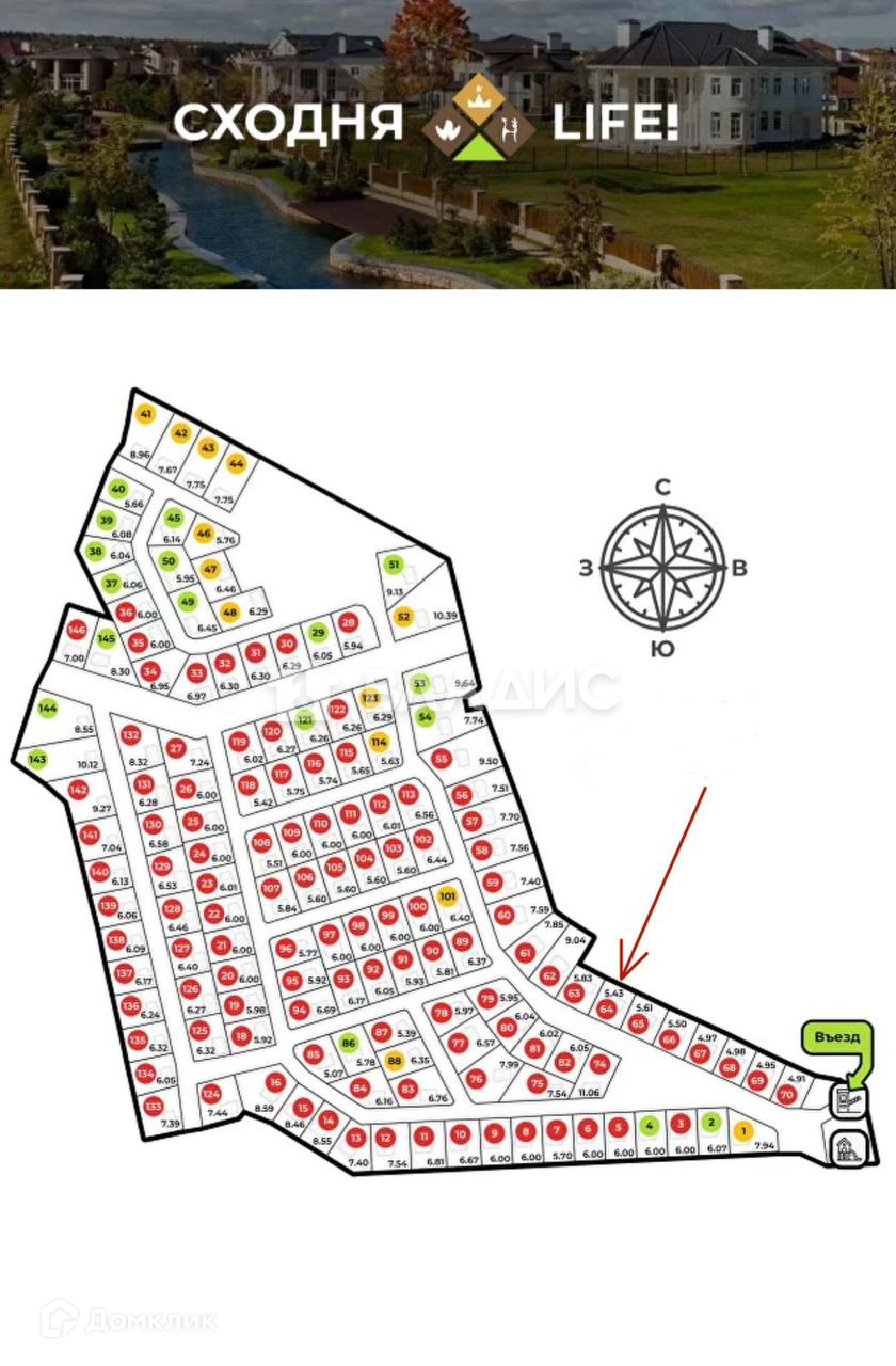 Участок 64. Ровный , в начале поселка , находится наверху , не в низине.