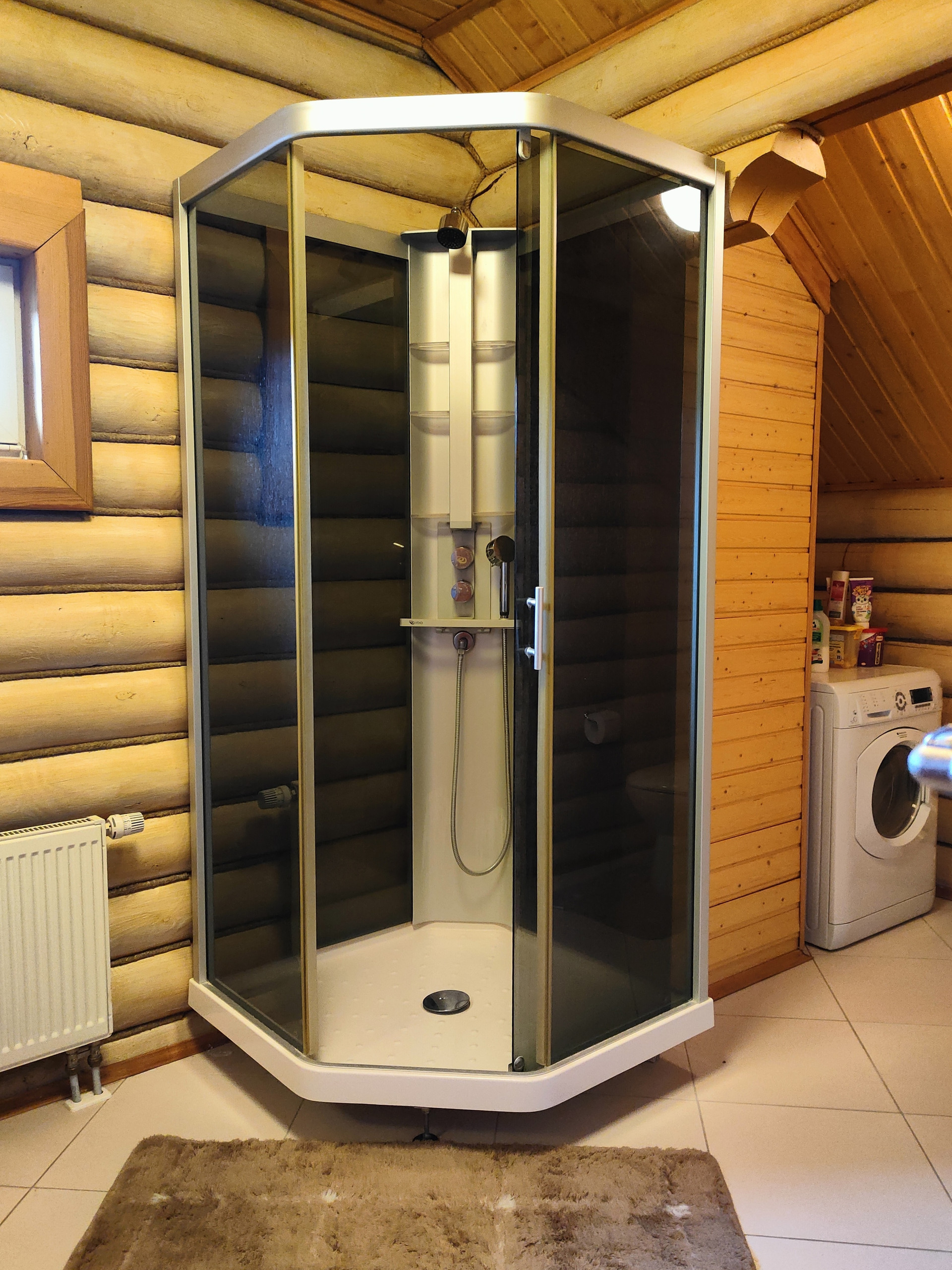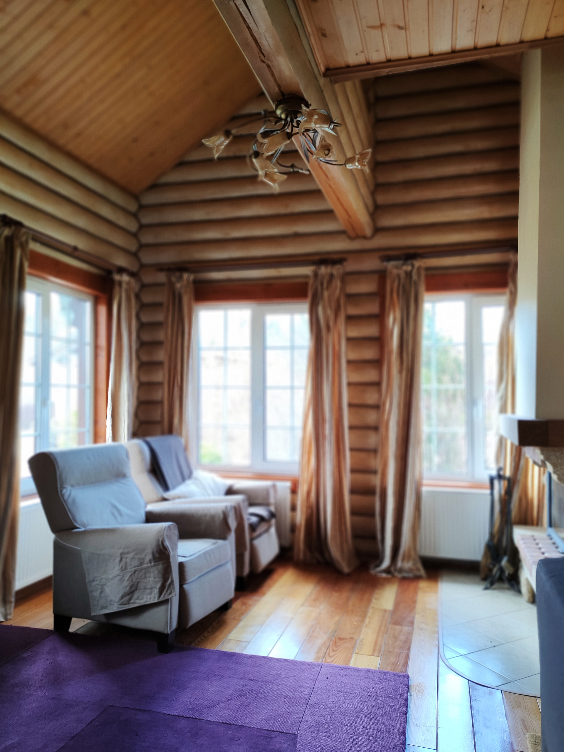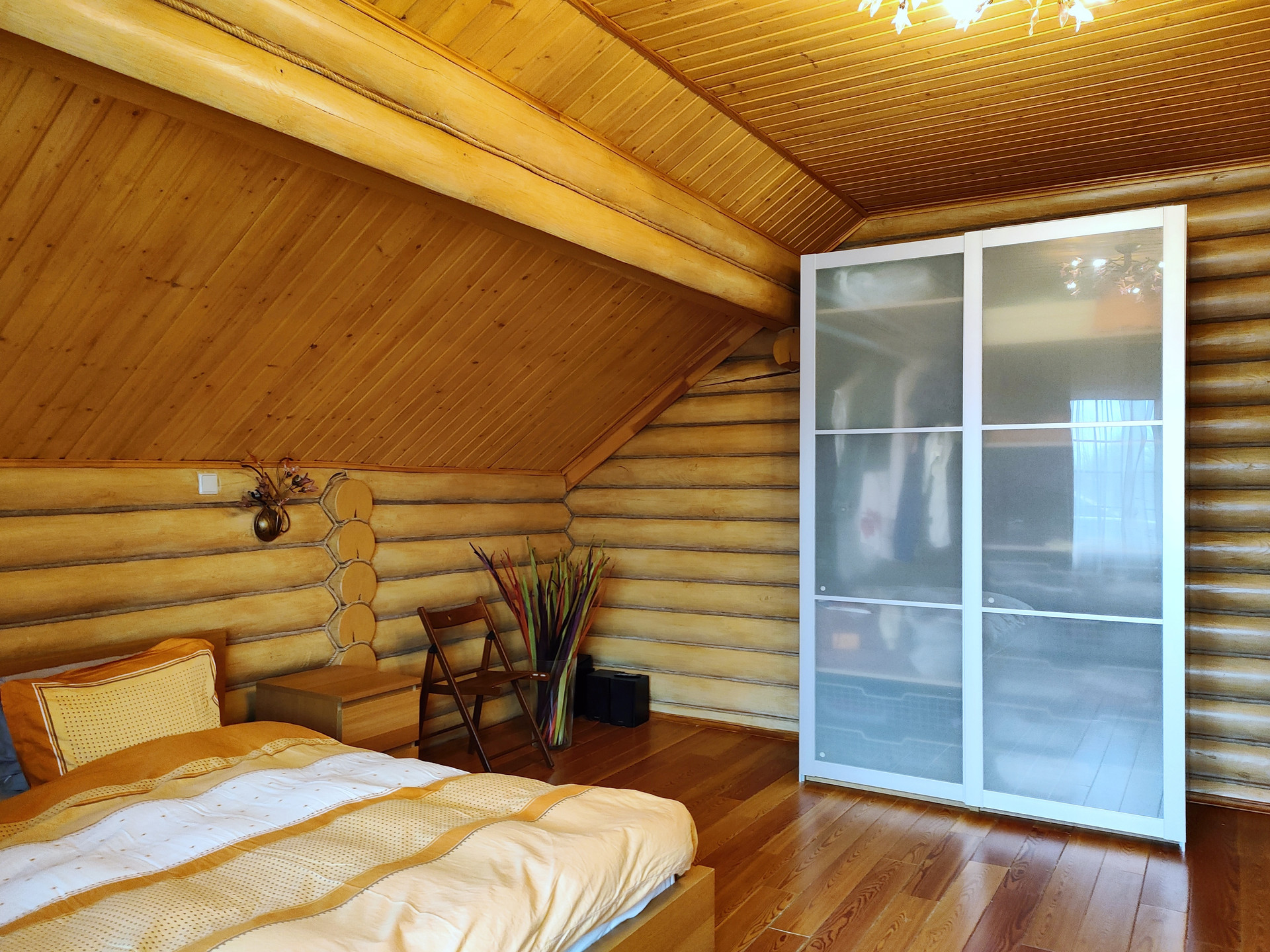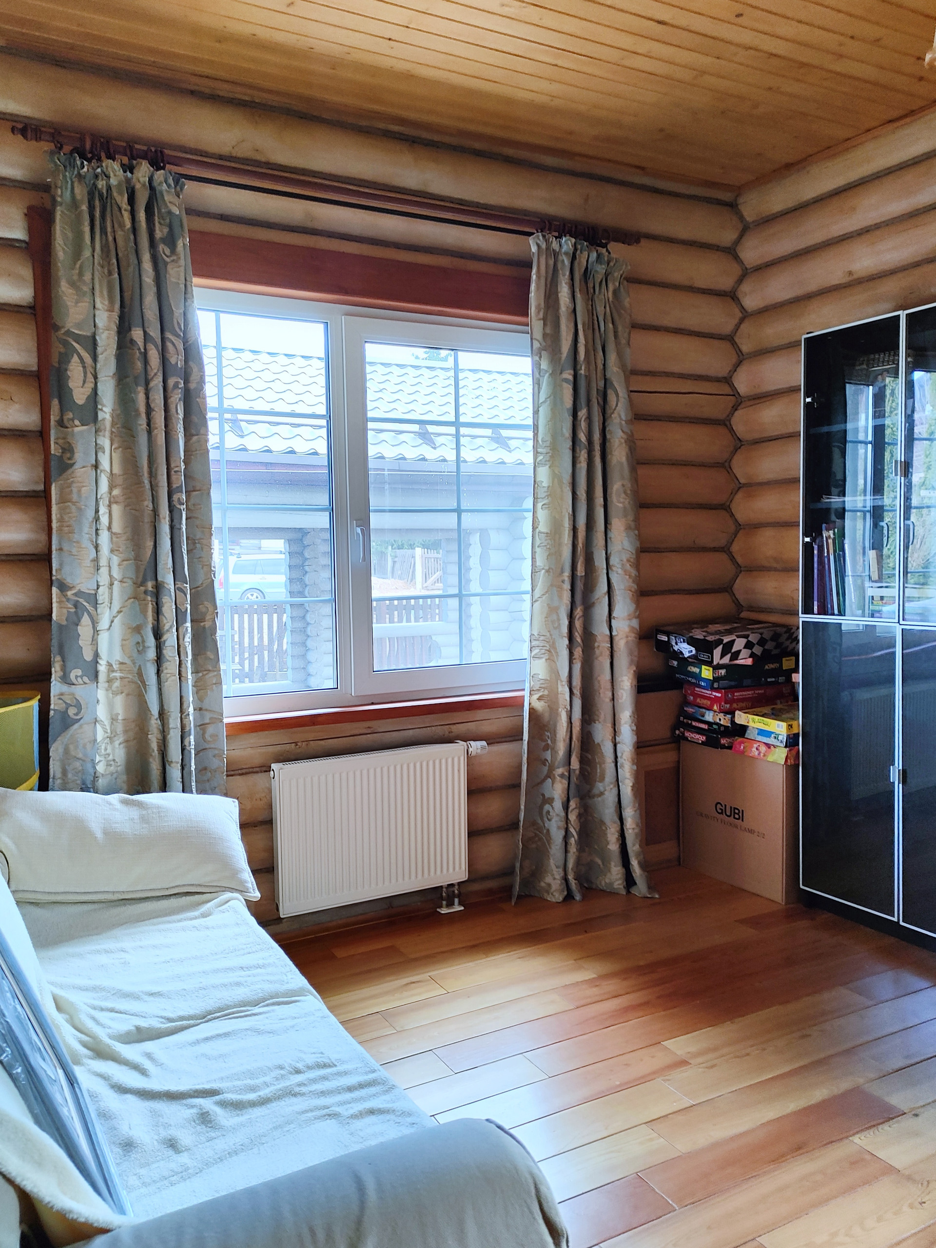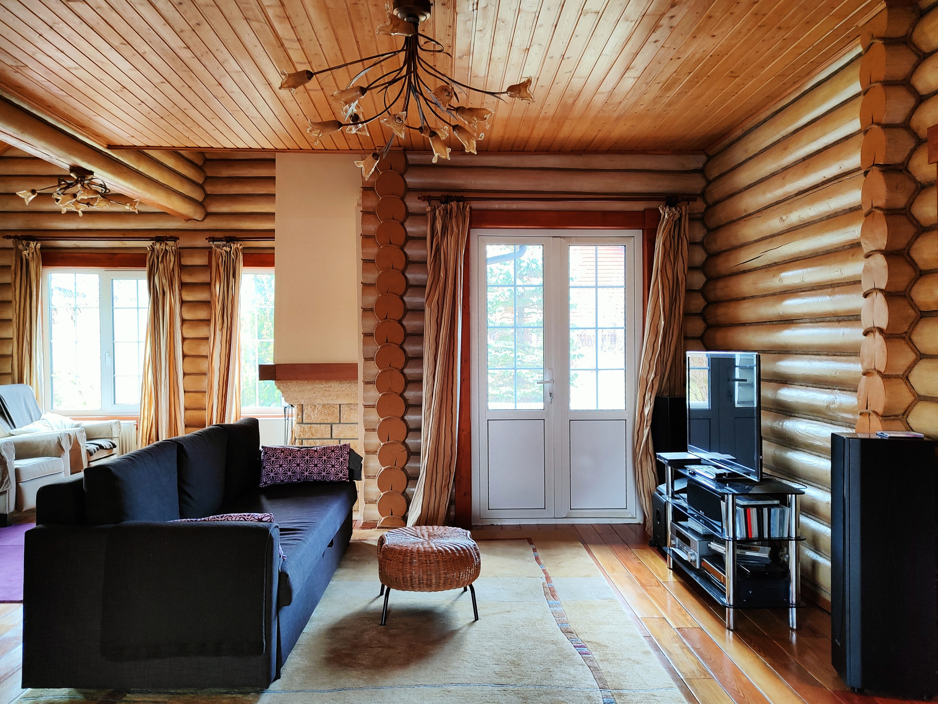 Дом подходит для круглогодичного проживания. Часть соседей живет в поселке постоянно. Дом построен из оцилиндрованного бревна, сухой и теплый. На крыше уложена металлочерепица, окна установлены пластиковые с деревянными наличниками.   Канализация и вода центральные, газ магистральный, котел отопления установлен газовый.