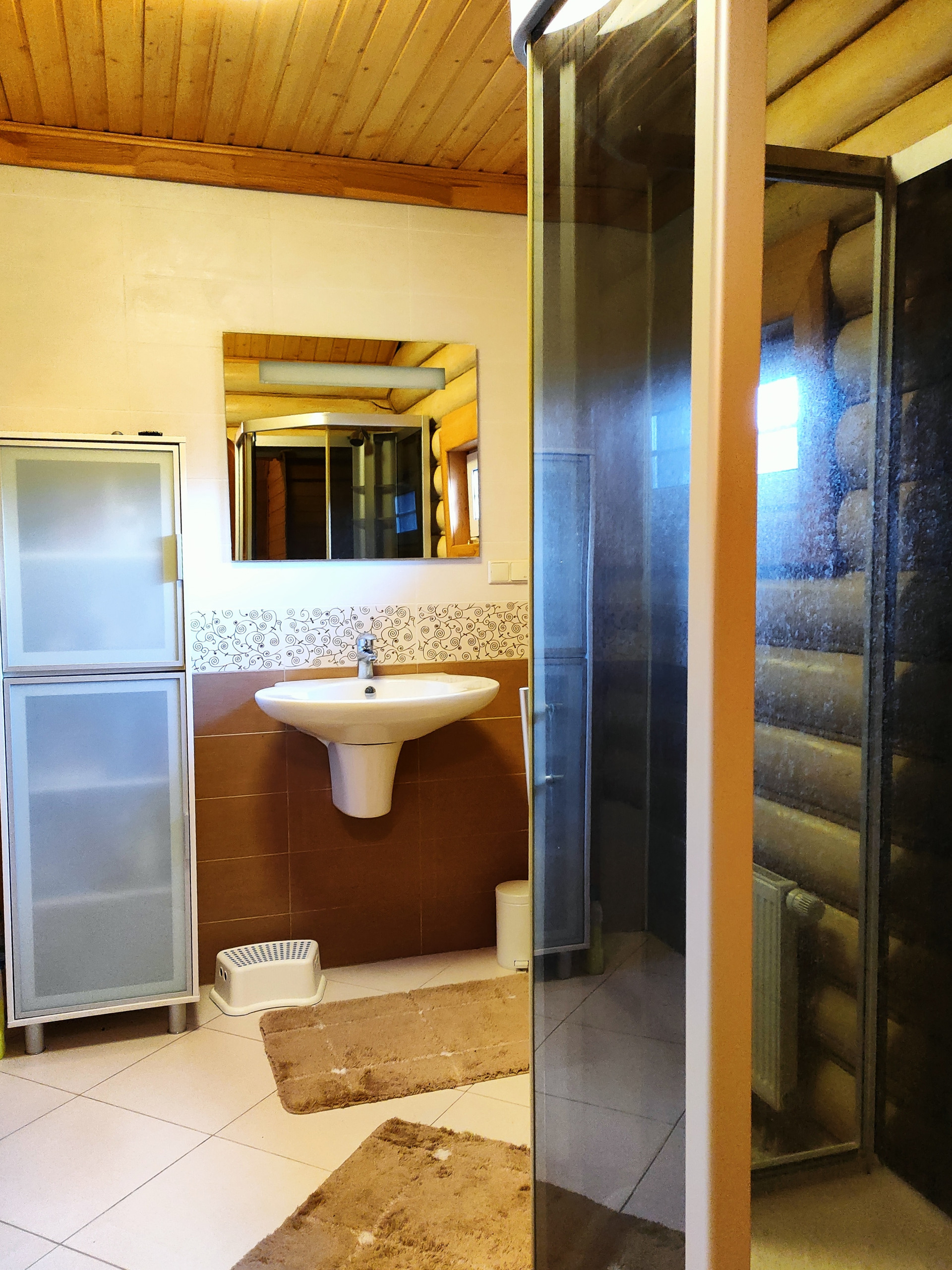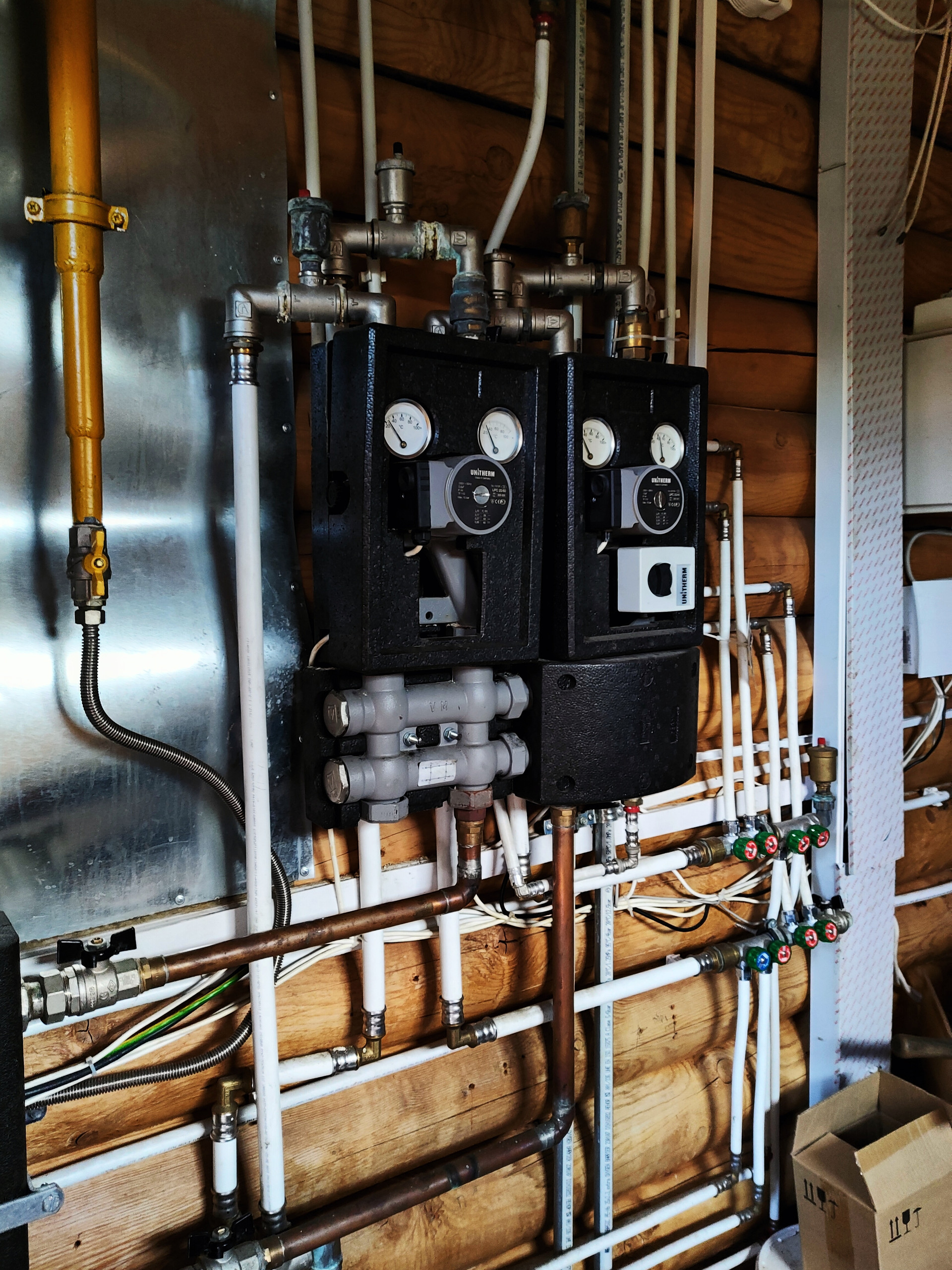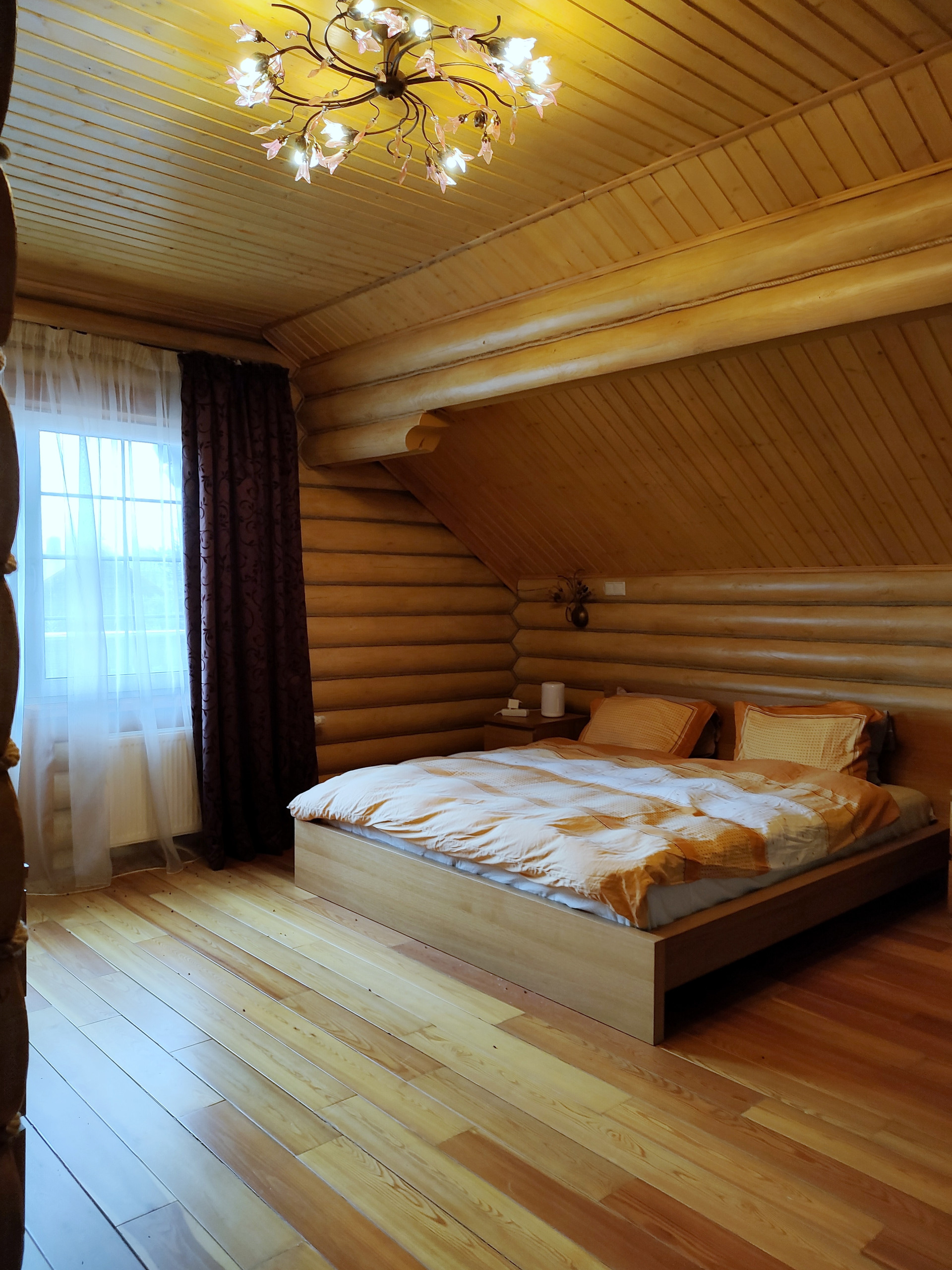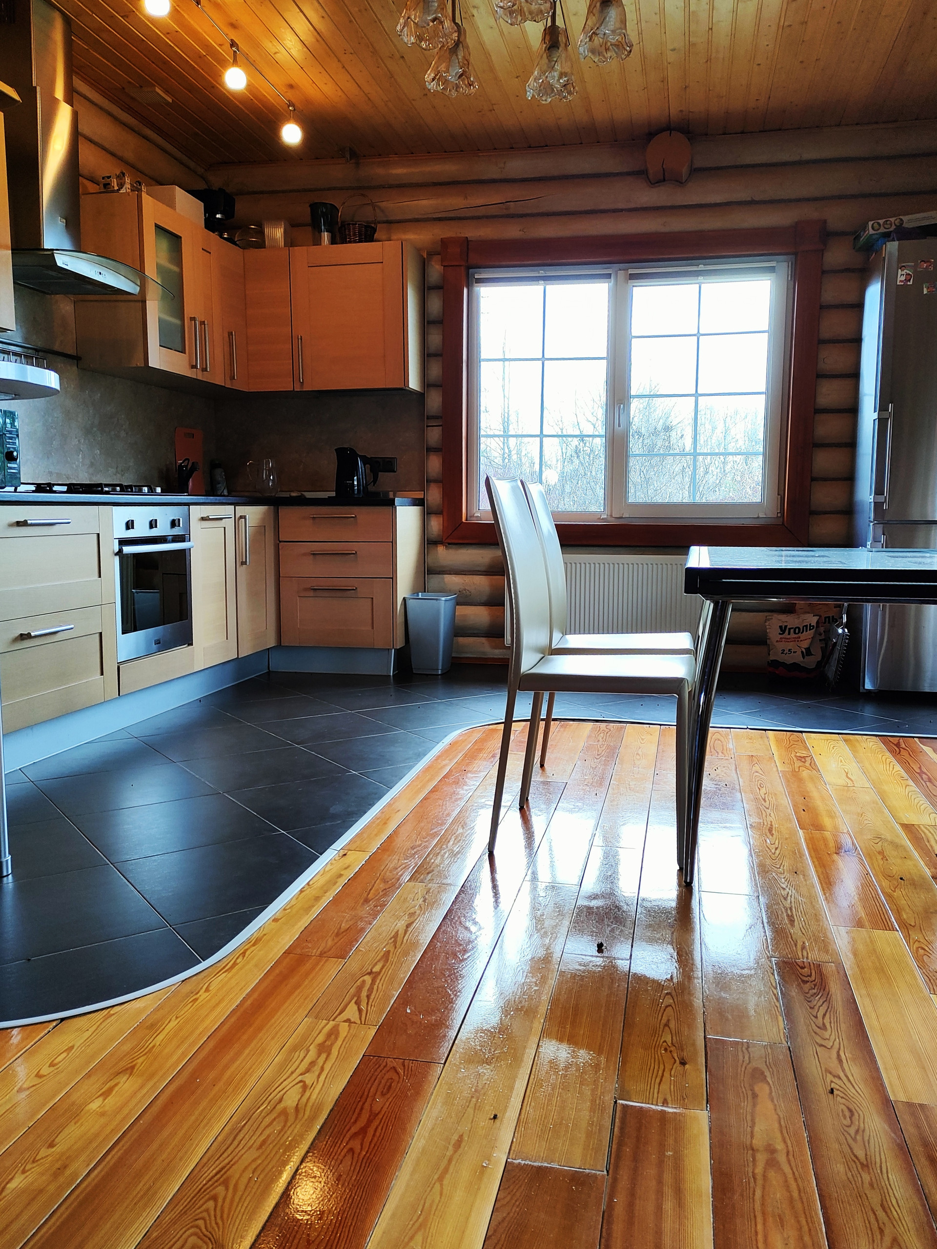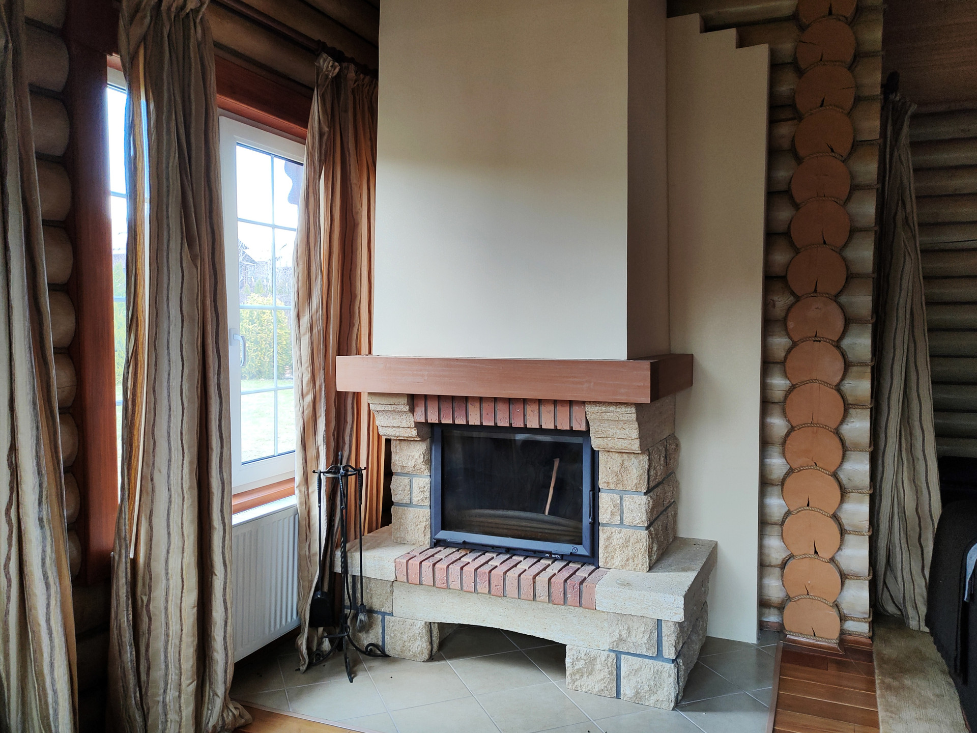 Дом подходит для круглогодичного проживания. Часть соседей живет в поселке постоянно. Дом построен из оцилиндрованного бревна, сухой и теплый. На крыше уложена металлочерепица, окна установлены пластиковые с деревянными наличниками.   Канализация и вода центральные, газ магистральный, котел отопления установлен газовый.