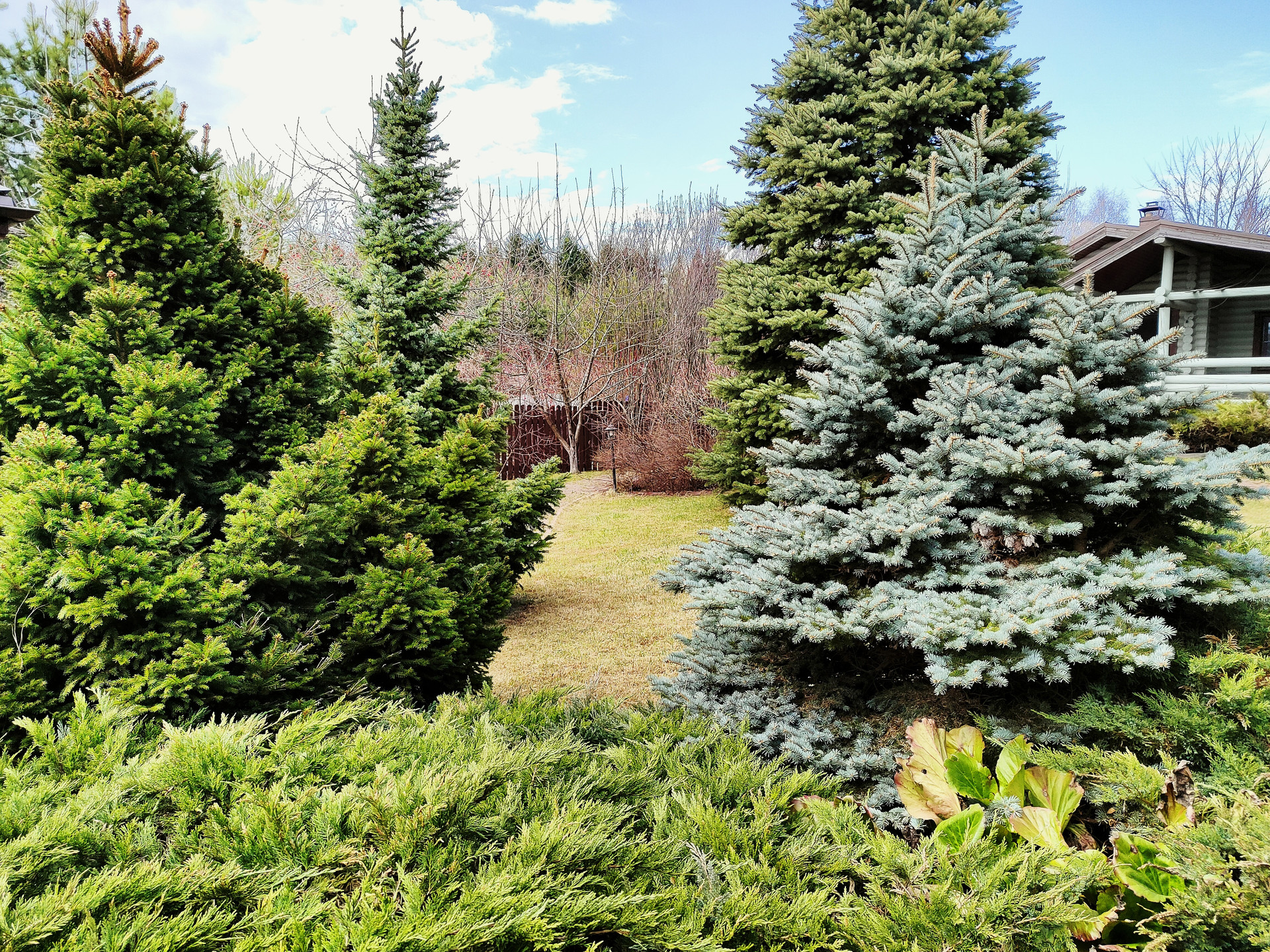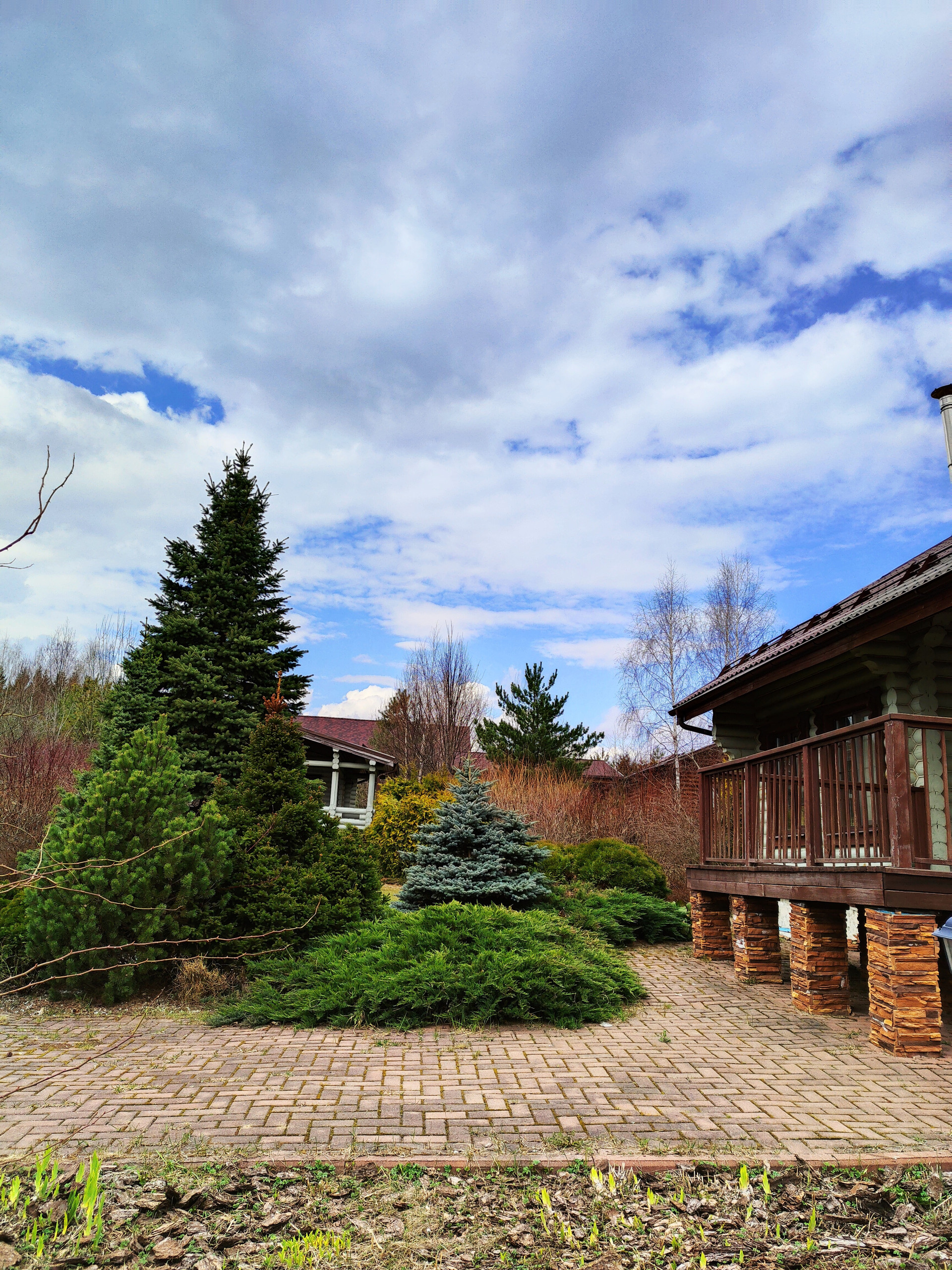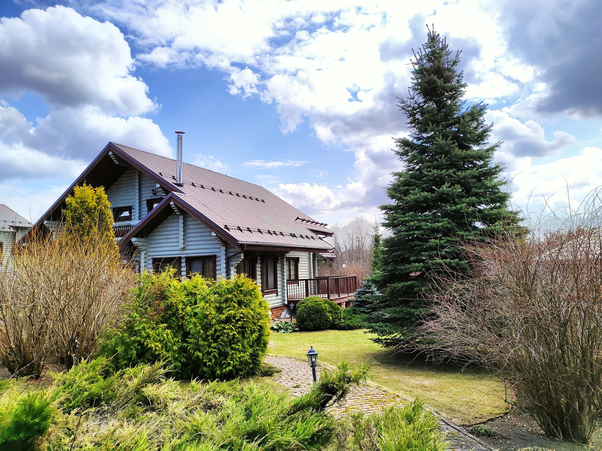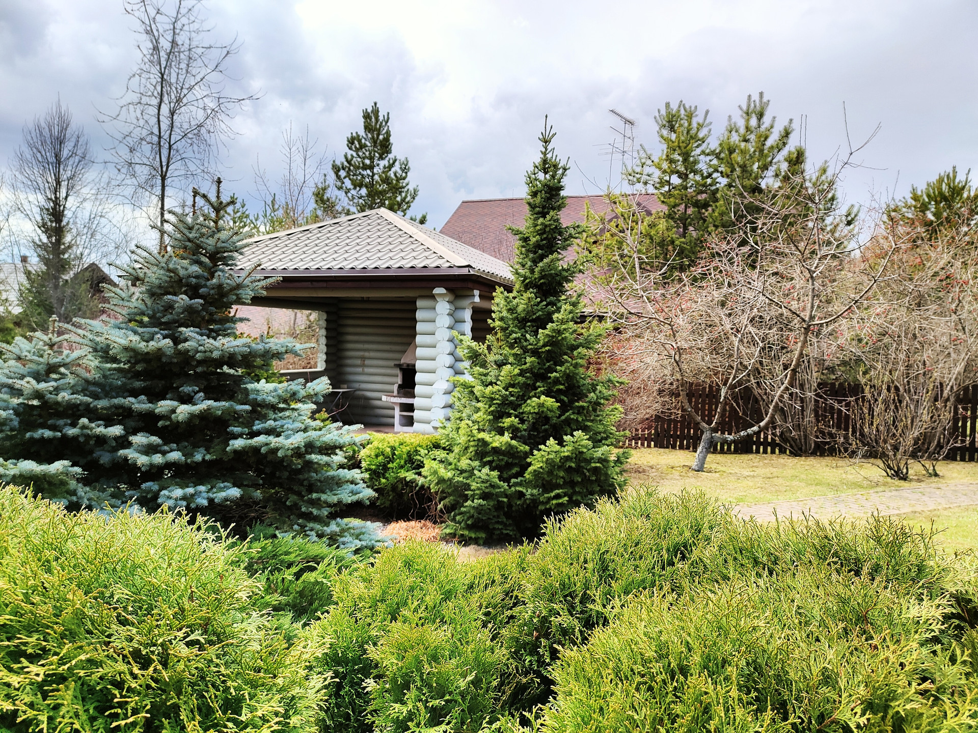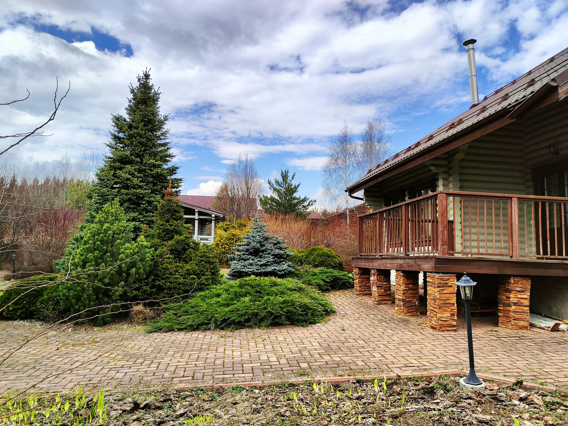 На участке сделан ландшафтный дизайн. Высажены хвойные крупномеры, фруктовые деревья и цветы. Участок ухоженный, за ним постоянно следят и ухаживают.