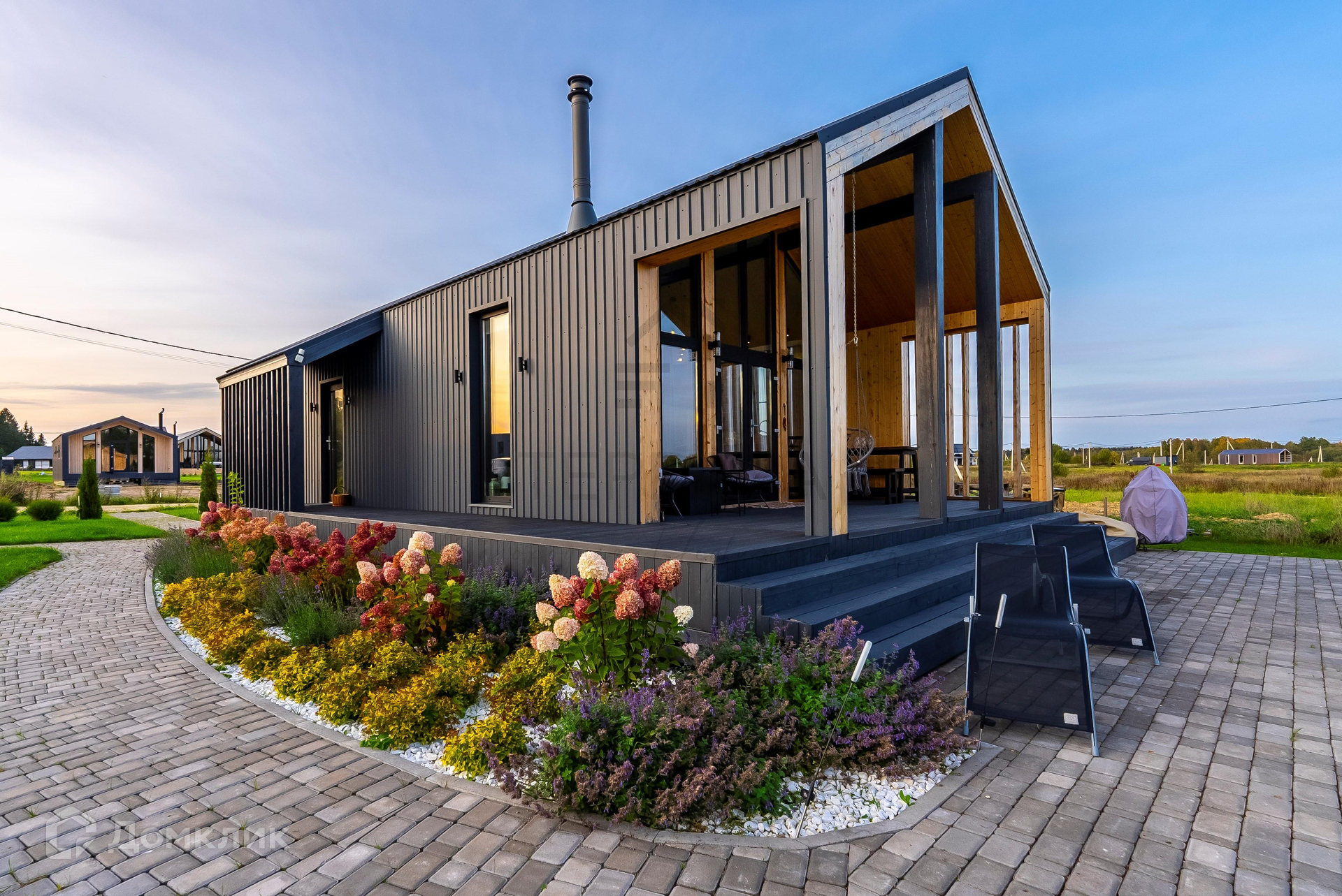 Современный дизайн дома точно оценят любители стиля и минимализма. Однако проект, помимо гармоничного дизайна и чувства уюта, сочетает в себе множество удобств и фишек: качественная бытовая техника, подведенные в дом коммуникации, облагороженная дворовая зона и живописный поселок!