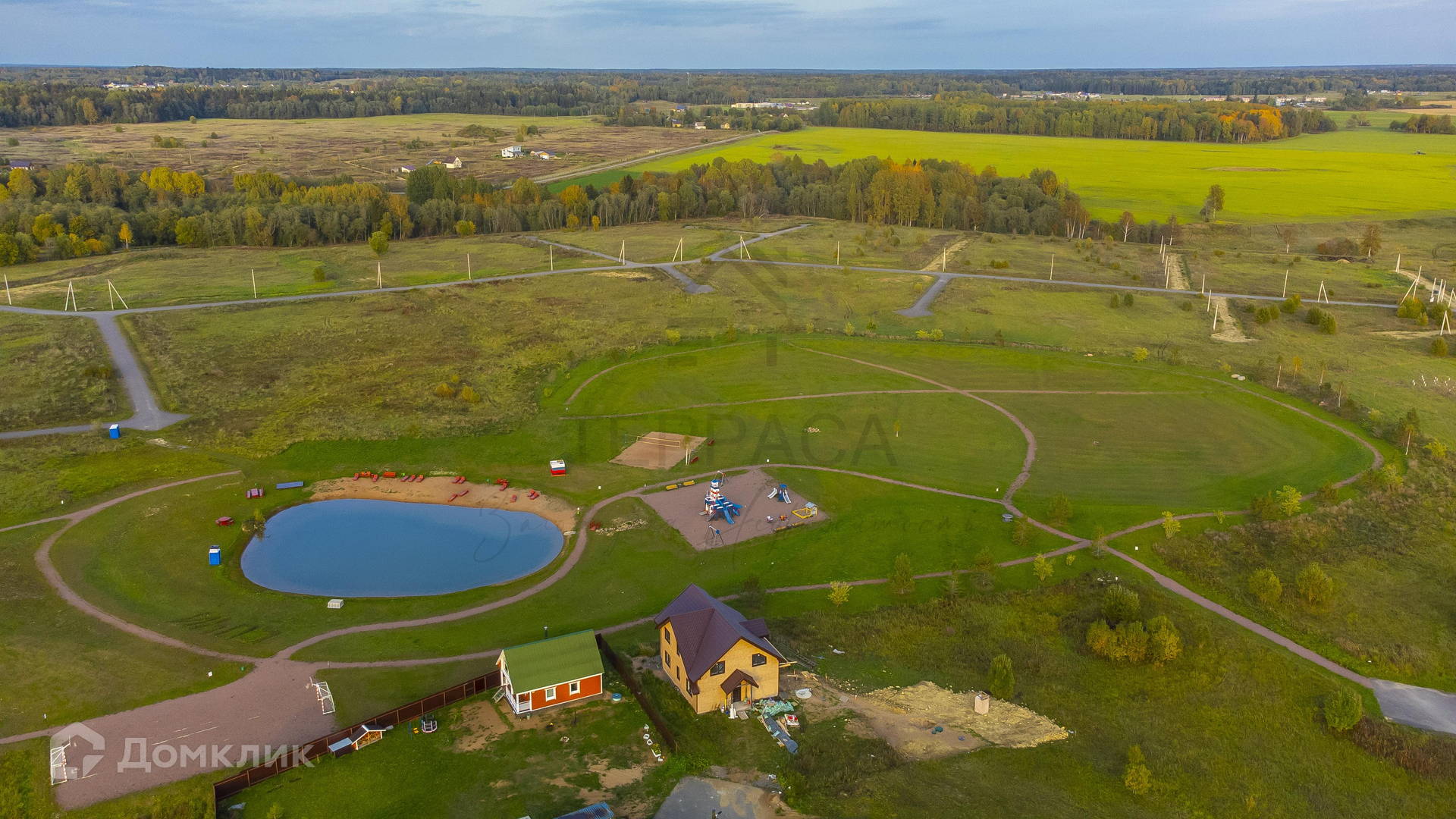 Самое главное достоинство месторасположения поселка – невероятно красивые виды природы! В любое время года можно насладиться живописными пейзажами, открывающимися за Вашим окном. Активный отдых проведите в гольф-клубе всего в 10 минутах от Вас, конном клубе, парке Ривьера и, конечно же, на пляже у озера!