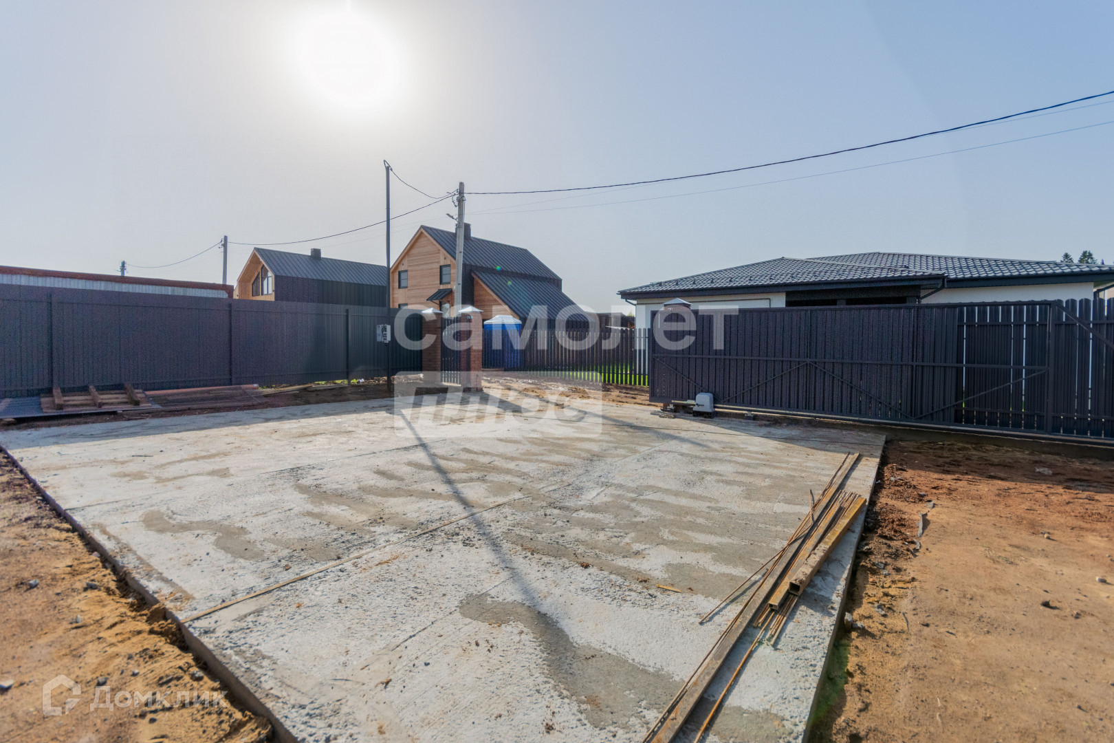 Участок огорожен, откатные ворота-евроштакетник