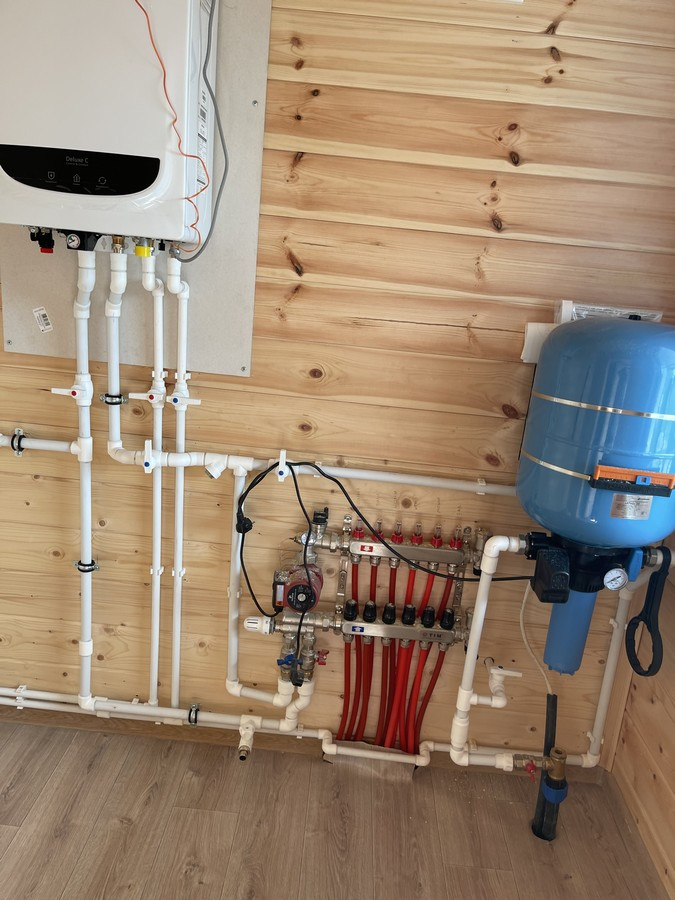 Дом с теплым полом и полной внутренней, внешней отделкой. Центральный водопровод, магистральный газ, септик. Всё подключено, в санузлах установлена сантехника.