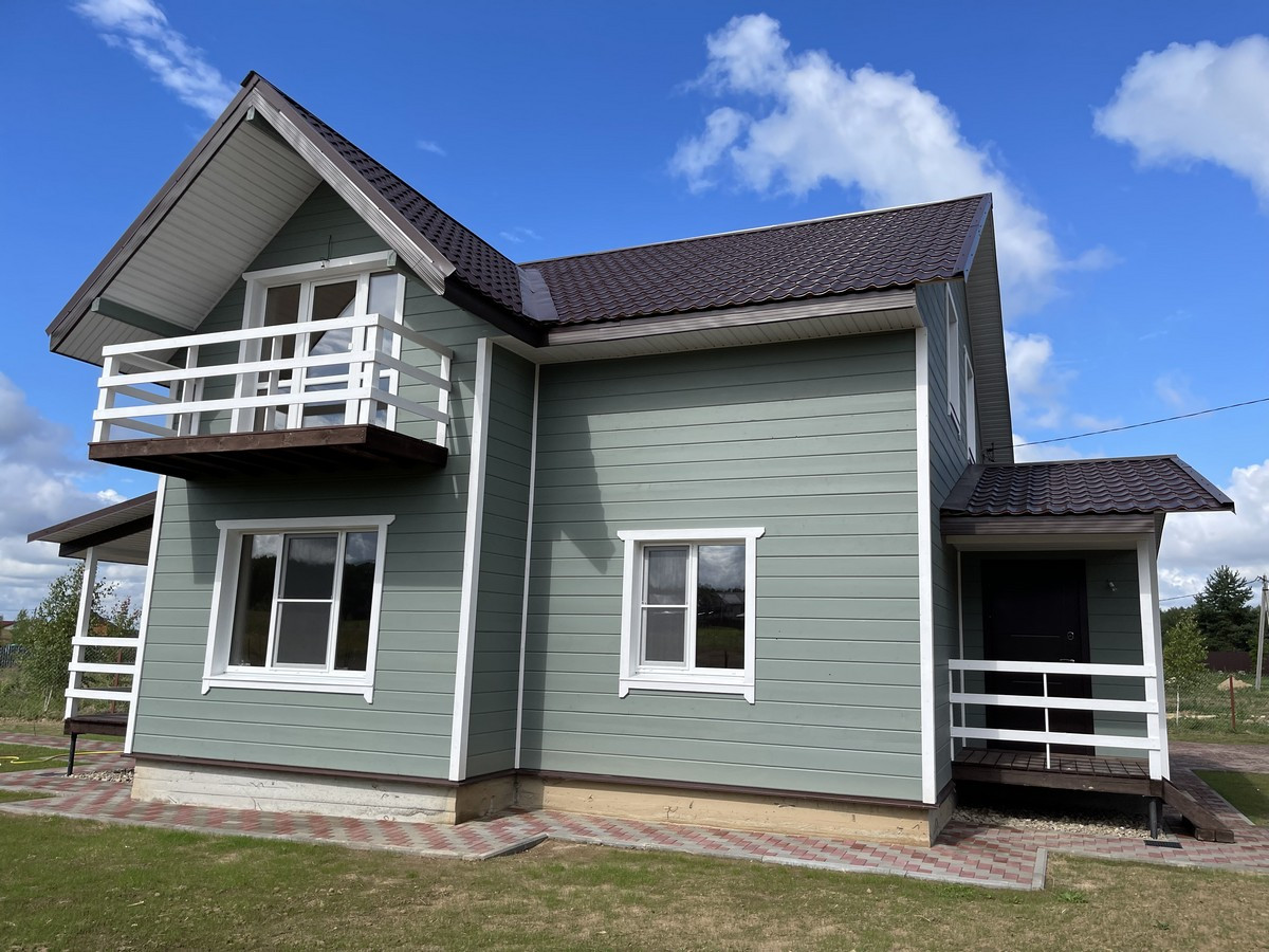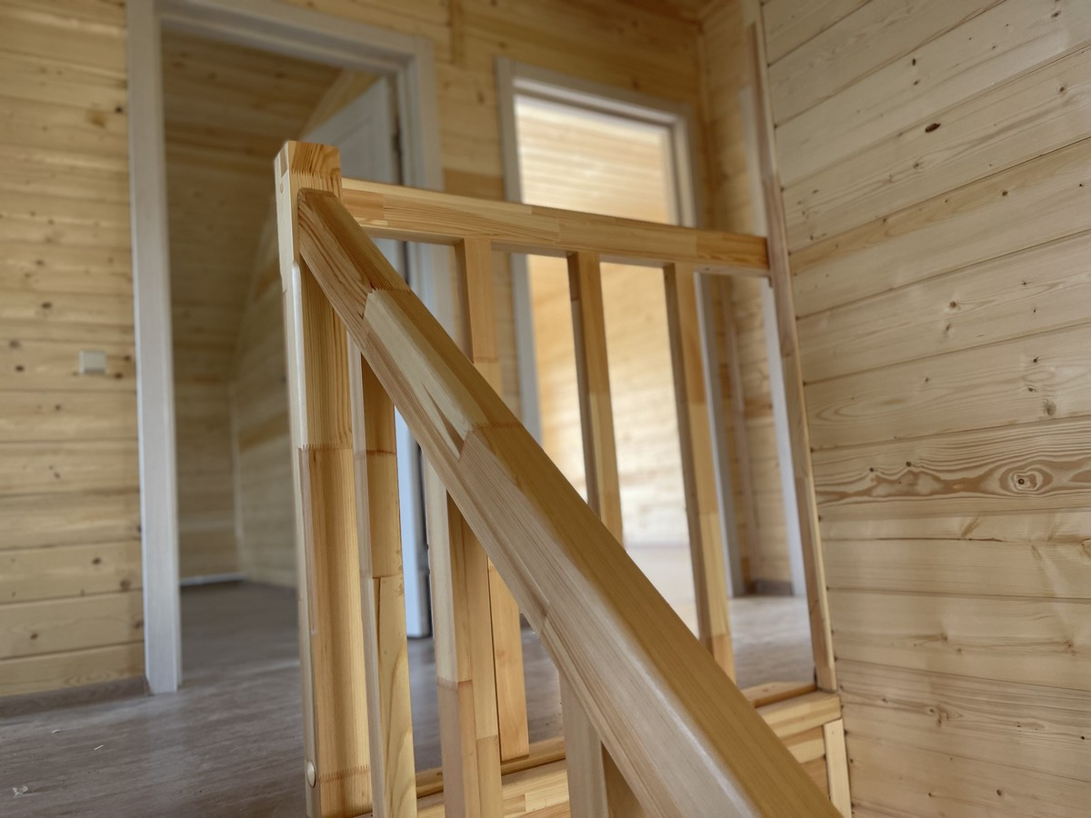 Общая площадь - 175 кв.м. Материал дома брус сечением – 150мм 0. Внутренняя и внешняя отделка дома - стены имитация бруса. Утепление дома - стены 100 мм; пол, потолки, крыша - 150 мм. Окна - двухкамерные стеклопакеты Rehau. Крыша - мягкая черепица. Фундамент - монолитная плита.