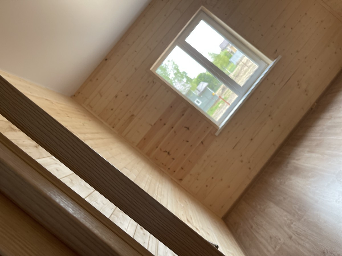 1 этаж - прихожая, бойлерная, кухня-гостиная с выходом на террасу, спальня, санузел; 2 этаж - 3 спальни, холл, балкон, санузел.