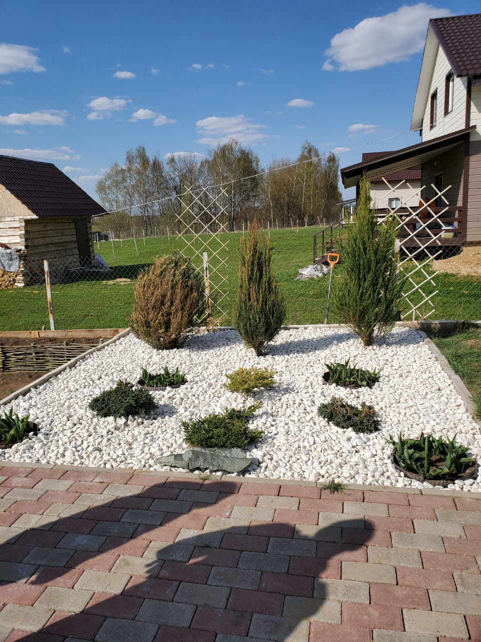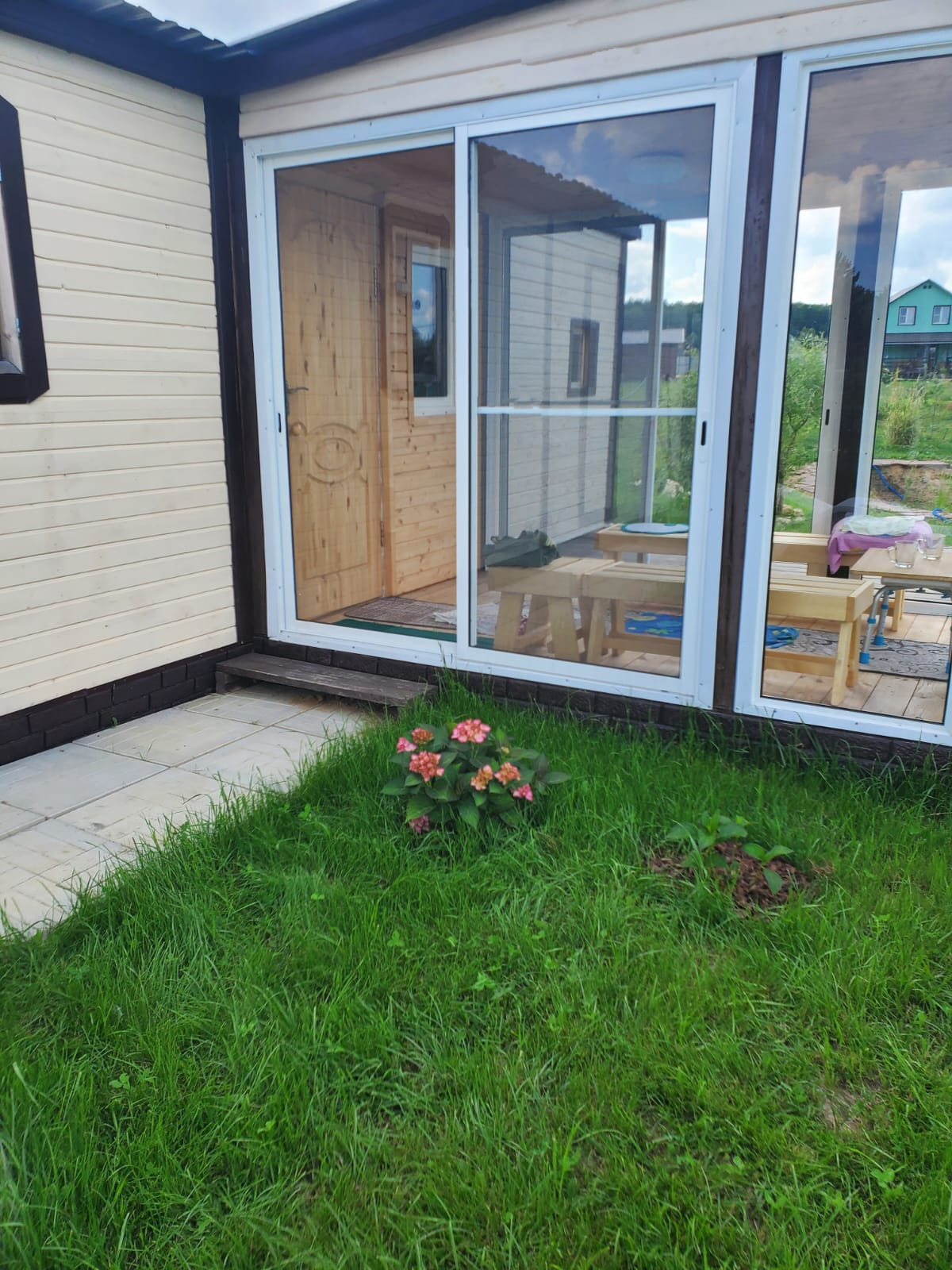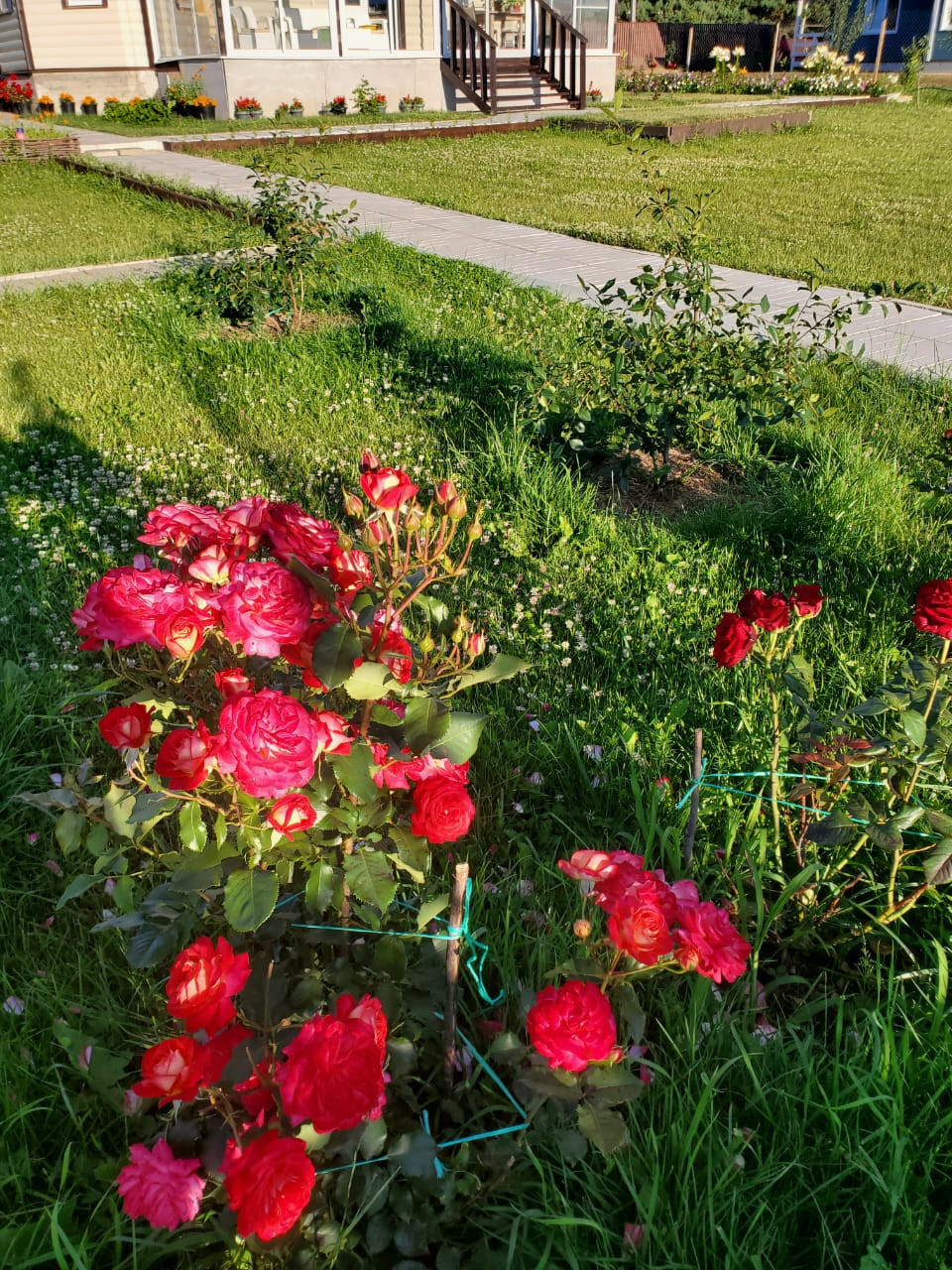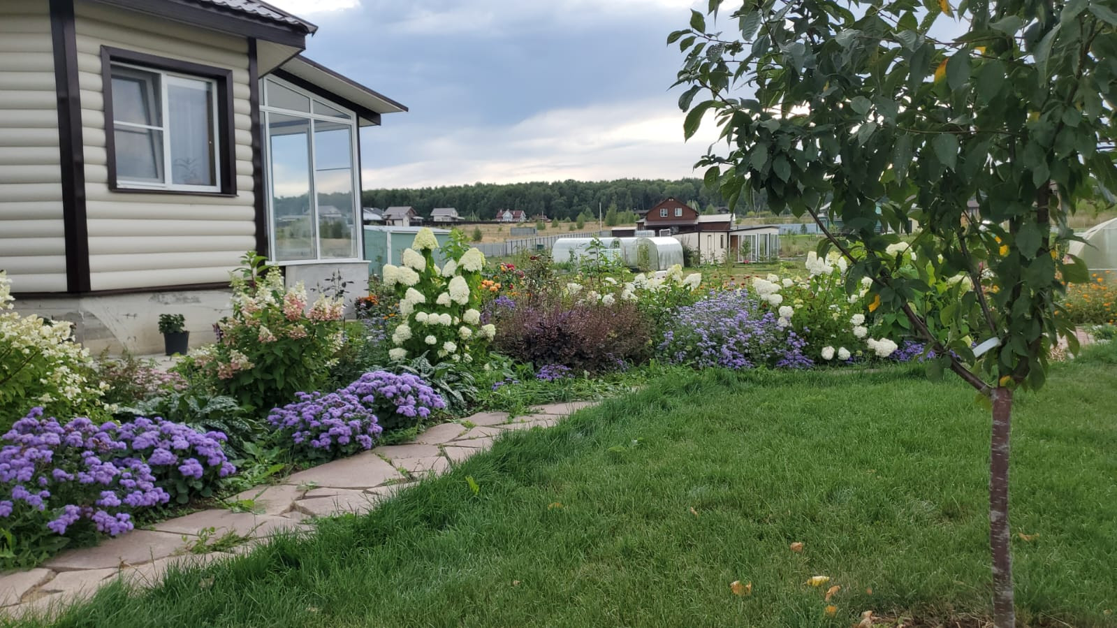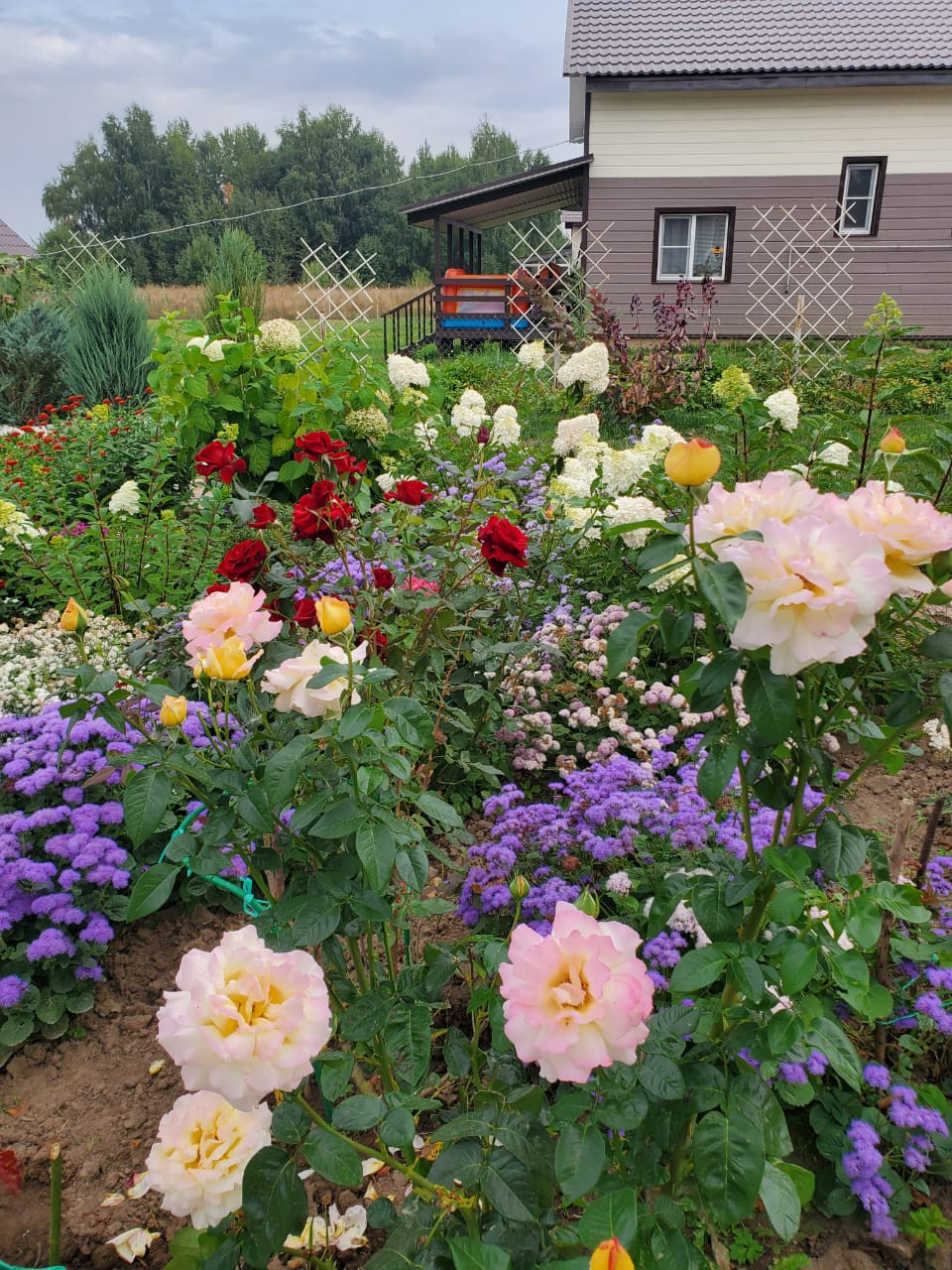 На участке расположились – жилой дом, отдельно стоящая деревянная баня, с остекленной террасой, 2 теплицы, зона отдыха, зона барбекю, зона парковки, газонная зона, фруктовые плодоносящие деревья и кустарники (груша, слива, алыча, яблоня, жимолость, смородина всех сортов, крыжовник, малина, шиповник, вишня, черемуха, калина, рябина), декоративные деревья (горная сосна, голубые ели, пихта, сосна, кедр, дуб, ивы, туи, можжевельники, березы, скумпии) и огромное количество цветов (гортензии, 100 кустов разных сортов роз, лилии, тюльпаны, нарциссы, крокусы, пионы, астильба, сирень, хосты и тд)