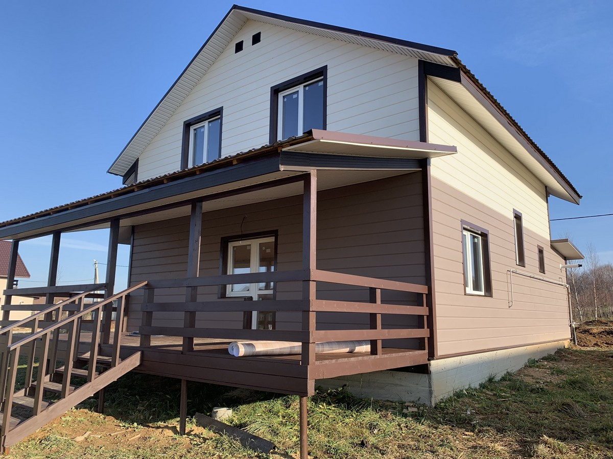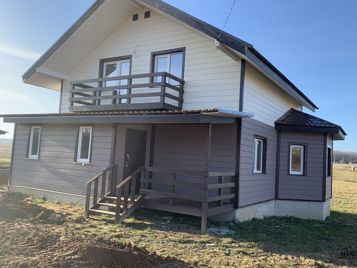 Современный дом под ключ  размером 160  кв. м с террасой ,эркером ,балконом, полноценный брус оба этажа. Дом из  бруса-2 этажа брус, утеплен, полная отделка. Установлена сантехника .