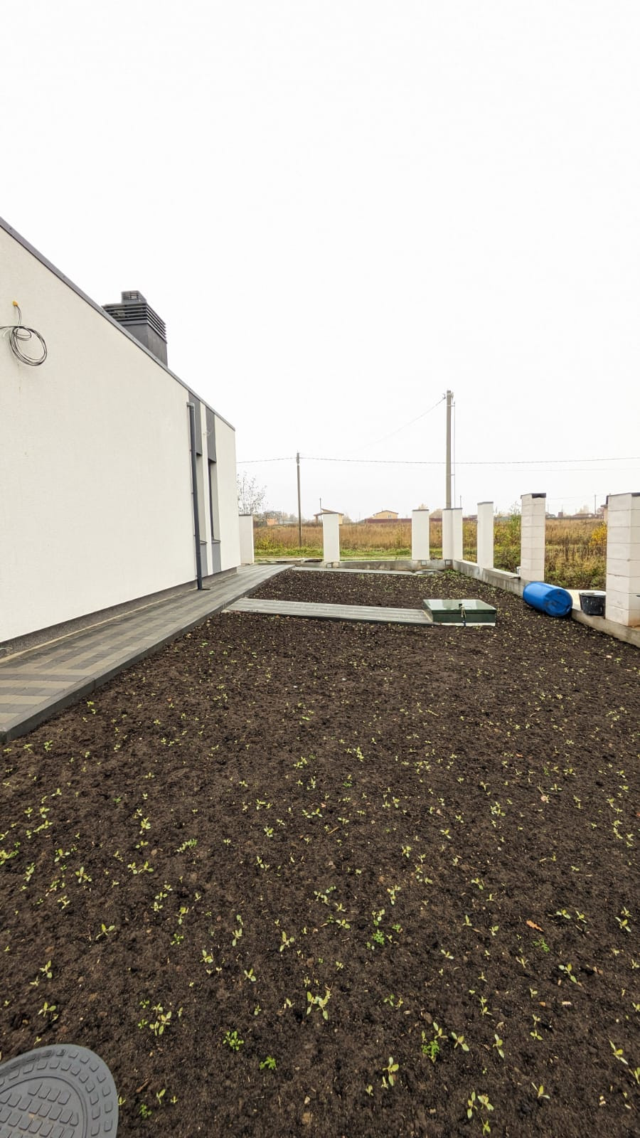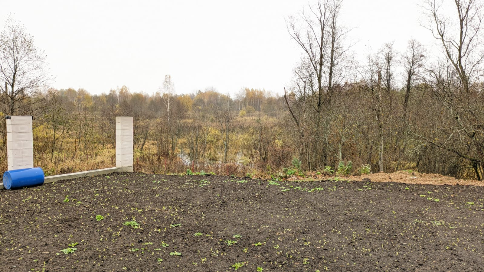Участок выровнен и ухожен, по всему периметру снят верхний слой (завезли супесь, песок, участок выровняли, земля уселась), сверху плодородная земля.